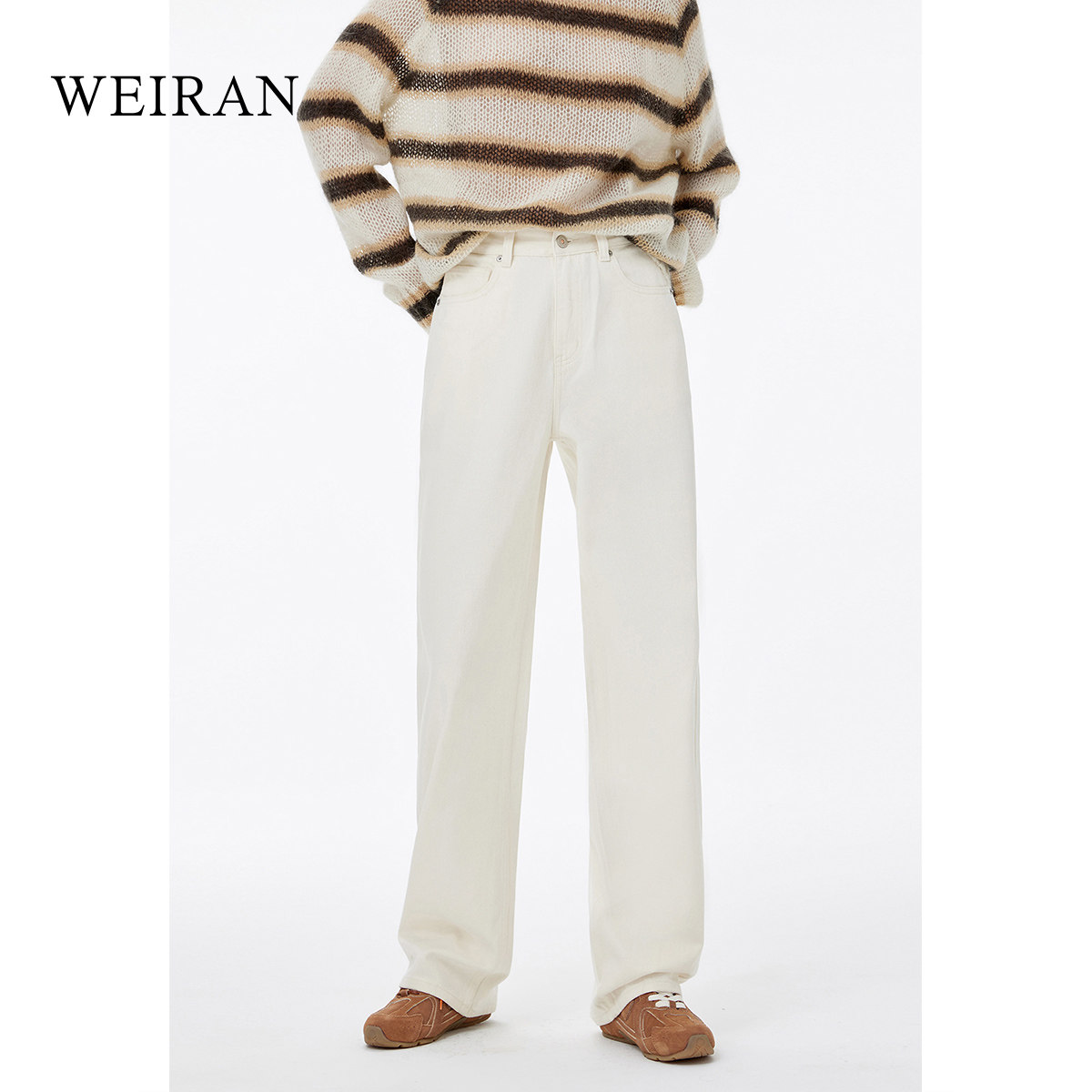 📚 【为面料买单】原胚色棉籽壳白未染高腰直筒牛仔裤长裤女