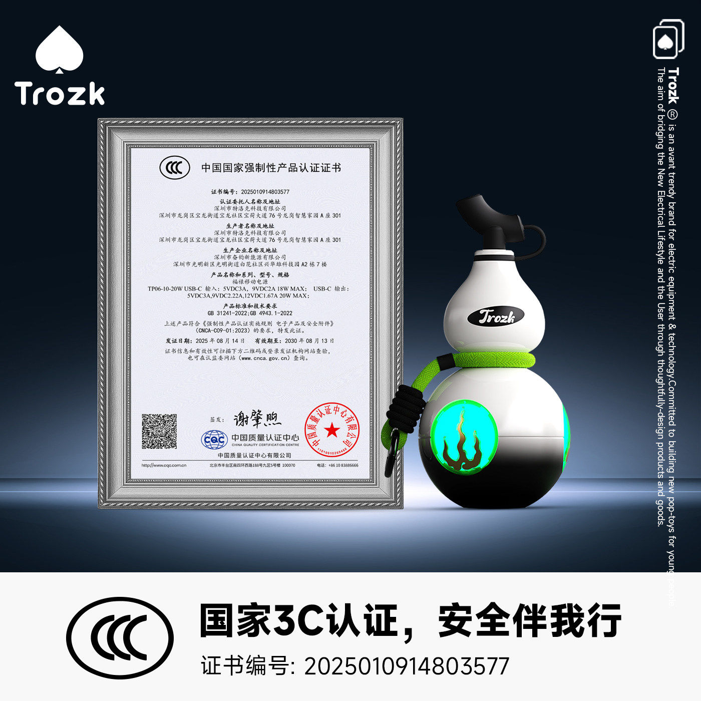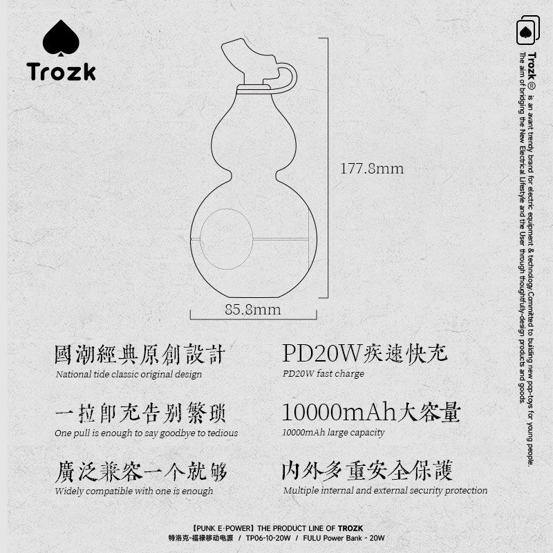 📚 Trozk特洛克福禄充电宝快充大容量可上飞机便携移动电源自带线