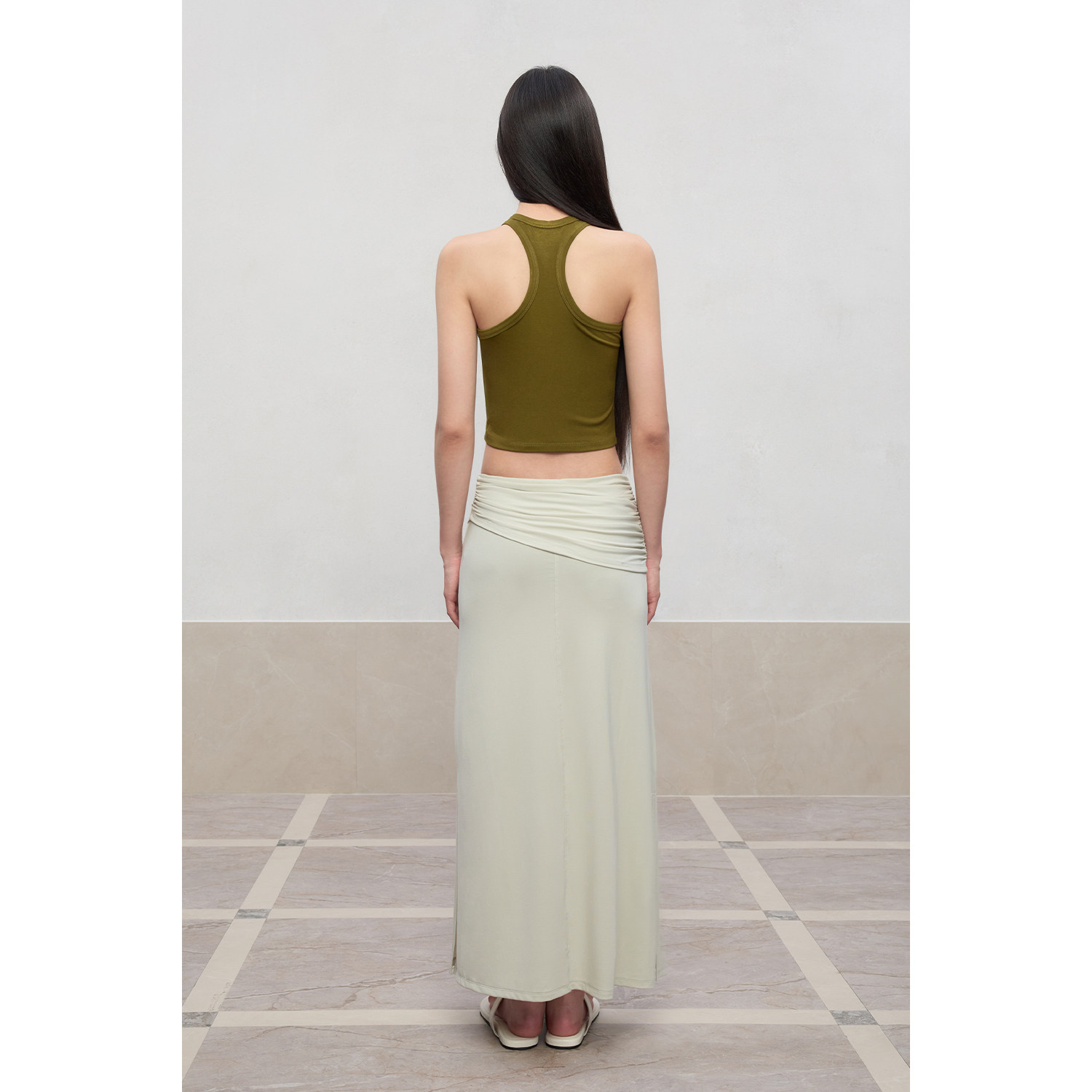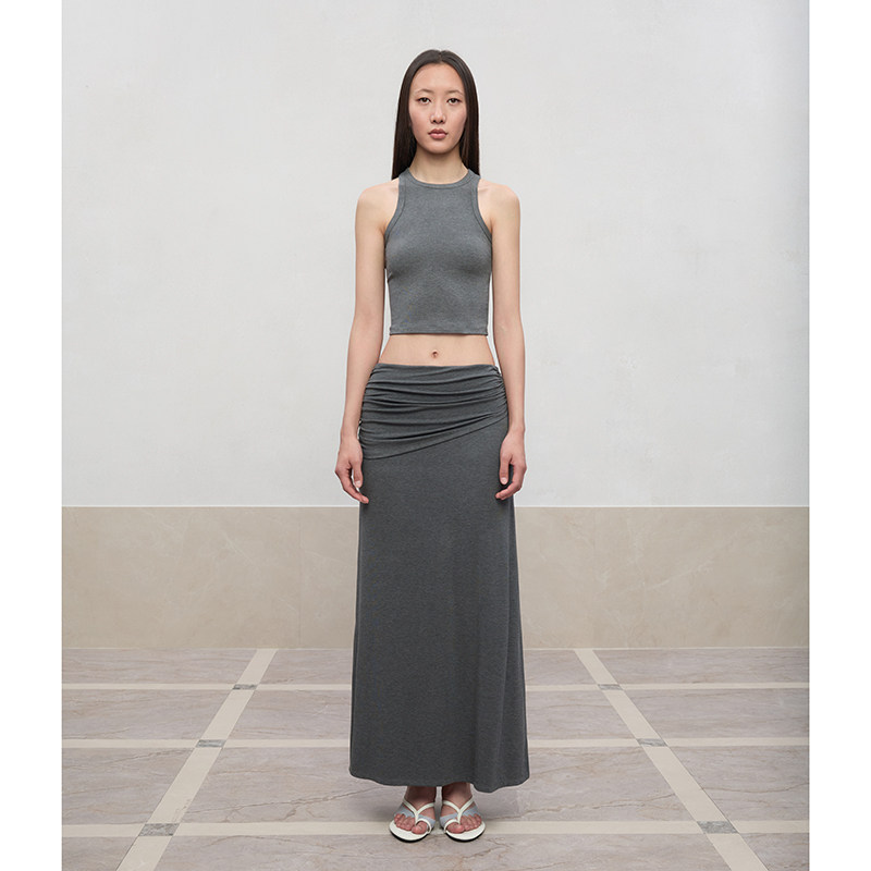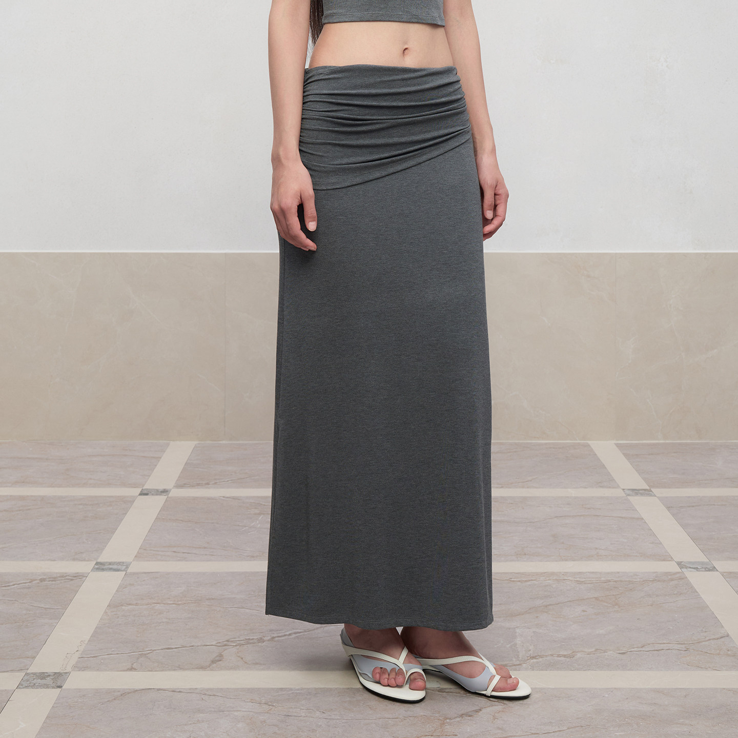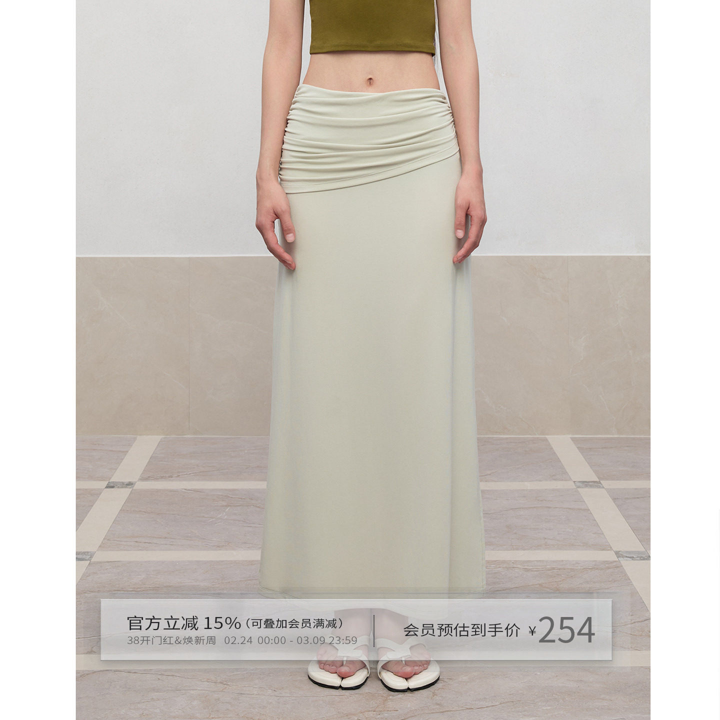 📚 出逃赤岗西 呼吸系列 莱赛尔褶皱低腰垂感直筒包臀侧开叉半身长裙