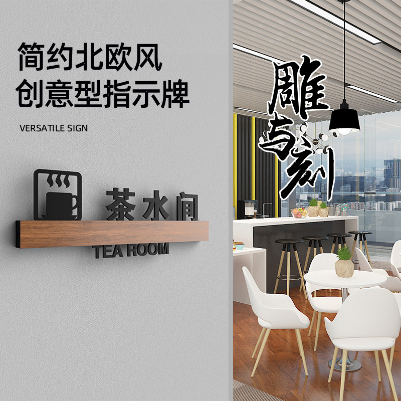 📚 3D镂空设计创意门牌茶水请自取棋牌室茶室提示牌收银台茶水间自助调料区标识牌制作定做餐饮标志牌子标示牌贴