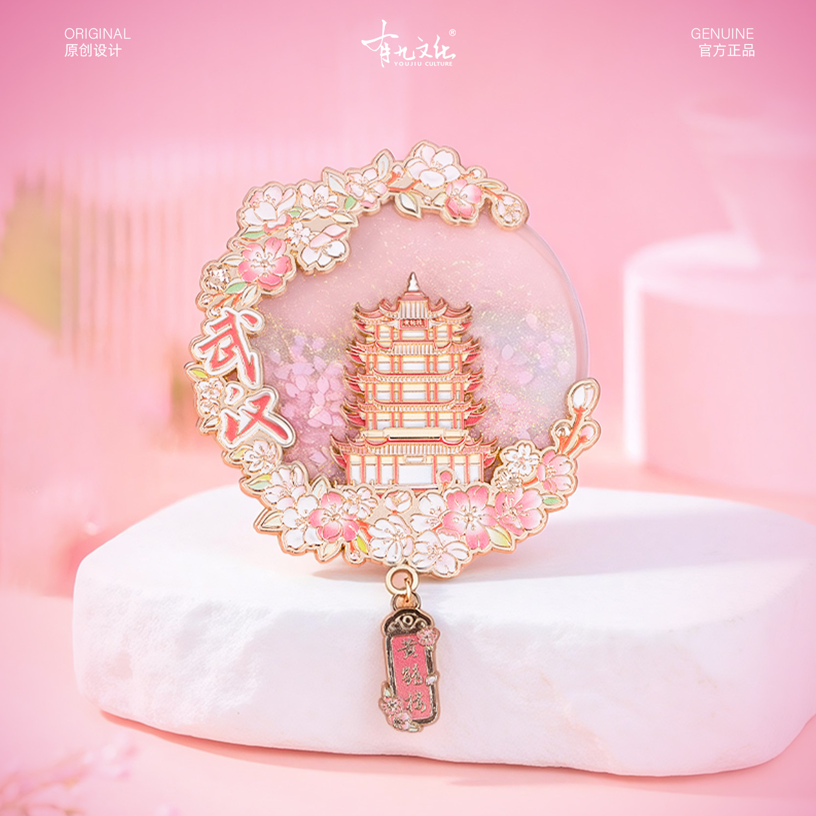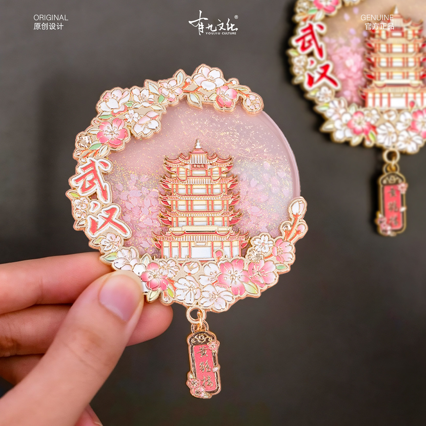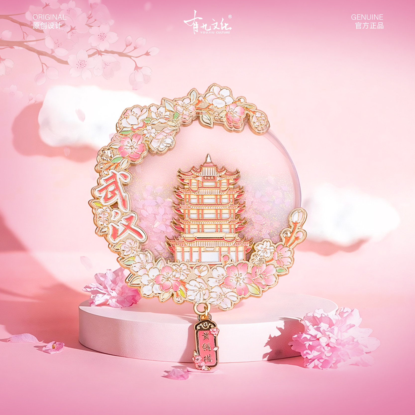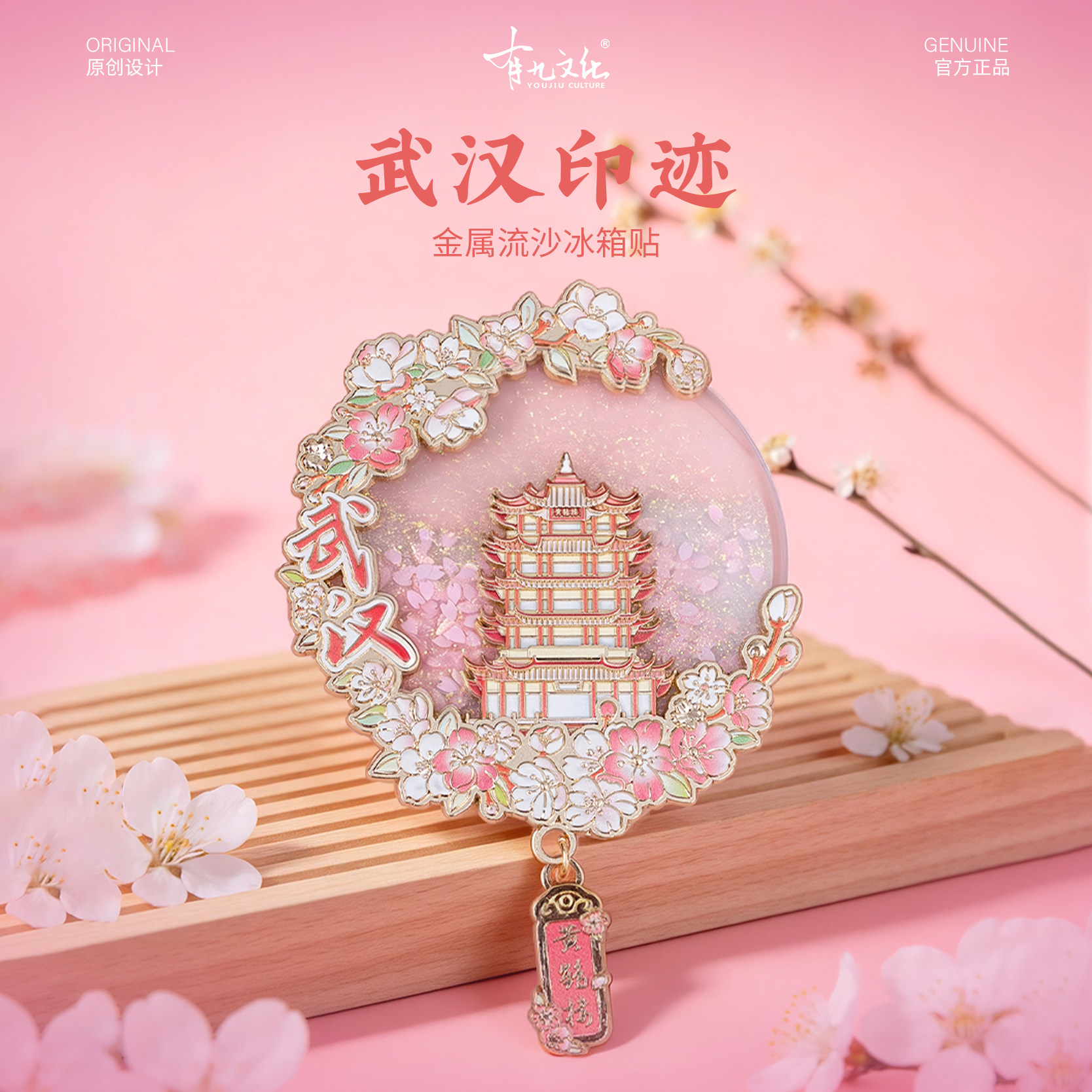 📚 有九文化武汉流沙冰箱贴金属磁贴龟山公园黄鹤楼樱花吊坠流沙旅游