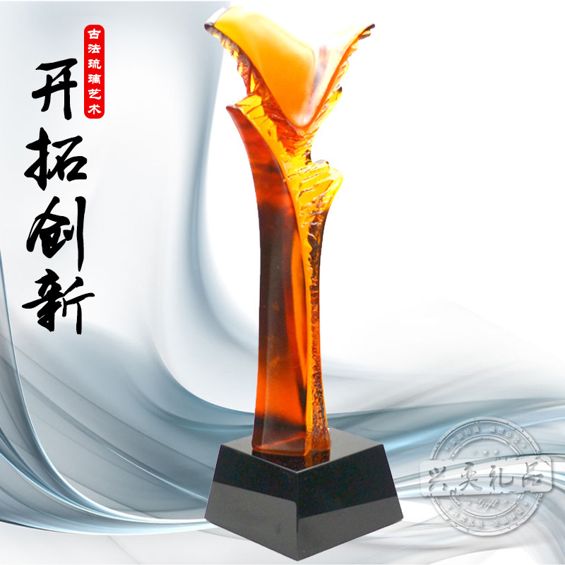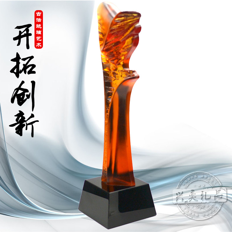 📚 开拓创新专业定制高档琉璃奖杯水晶奖杯奖牌水晶琉璃奖杯奖品礼品