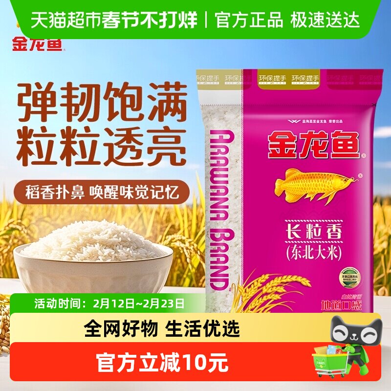 📚 下拉享特价 金龙鱼东北大米长粒香10kg*1袋清香型爽口