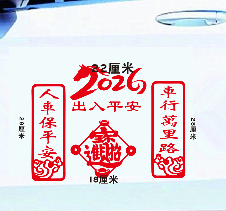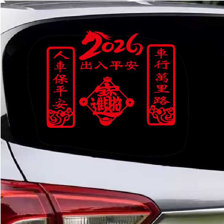 📚 2026马年车行万里路汽车用对联贴纸新年福字玻璃装饰车贴