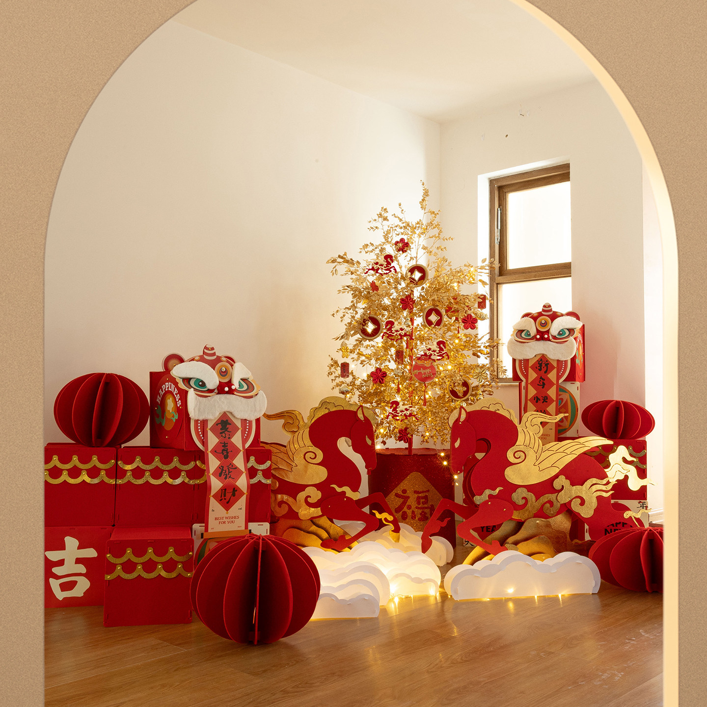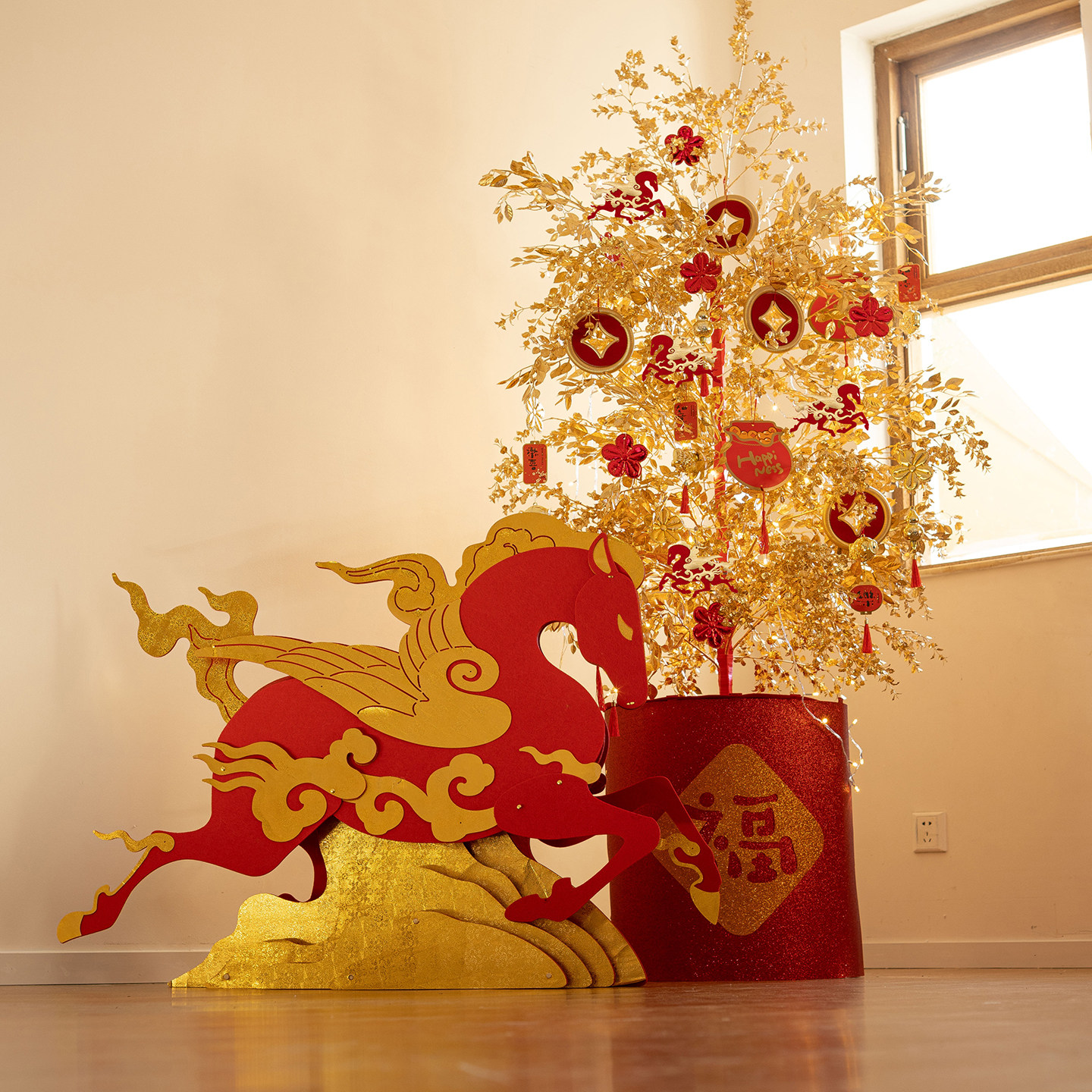 📚 马年装饰美陈落地摆件过年公司活动年会场景氛围新年春节堆头布置