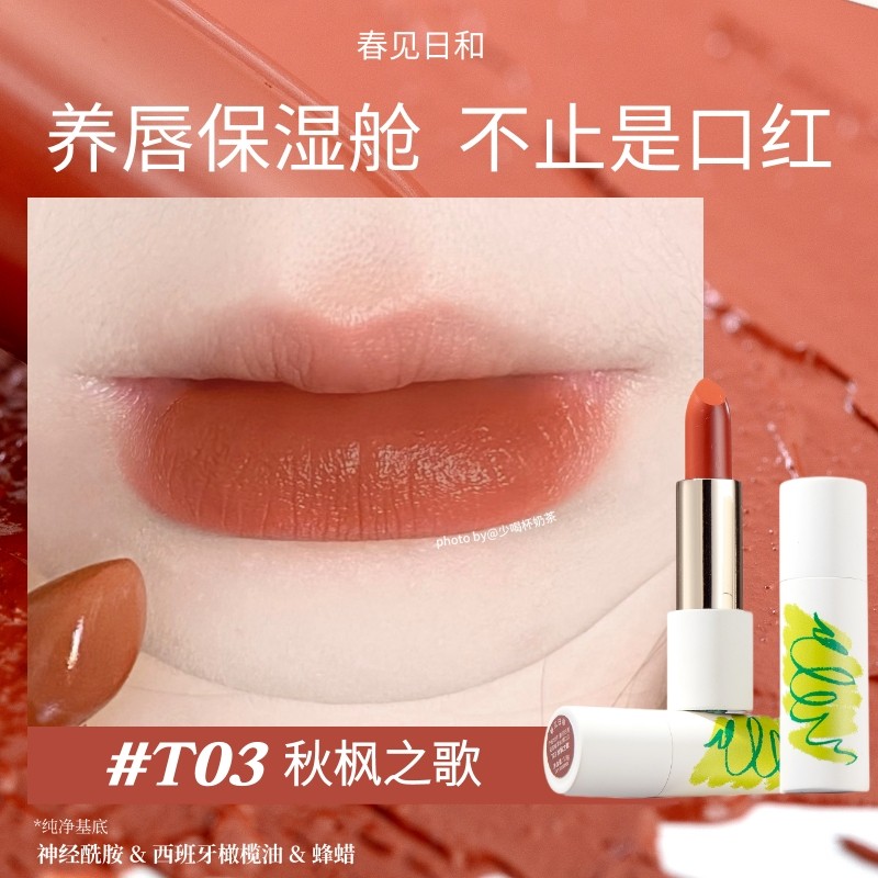 📚 春见日和T03秋枫之歌复古口红准孕妇保湿滋润显白枫叶色奶咖棕