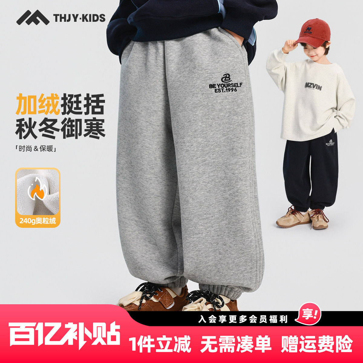 📚 男童加绒弯刀裤子运动裤卫裤2025秋冬新款儿童加绒加厚保暖休闲裤