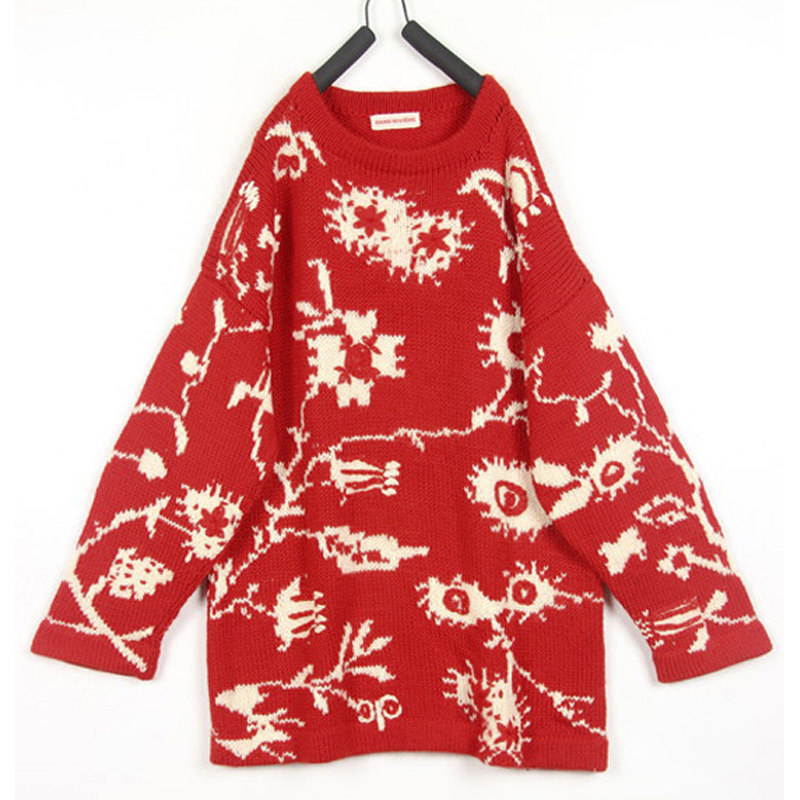 📚 秋冬装孤品复古古着vintage日本大红色抽象绣花手工钩织刺绣毛衣