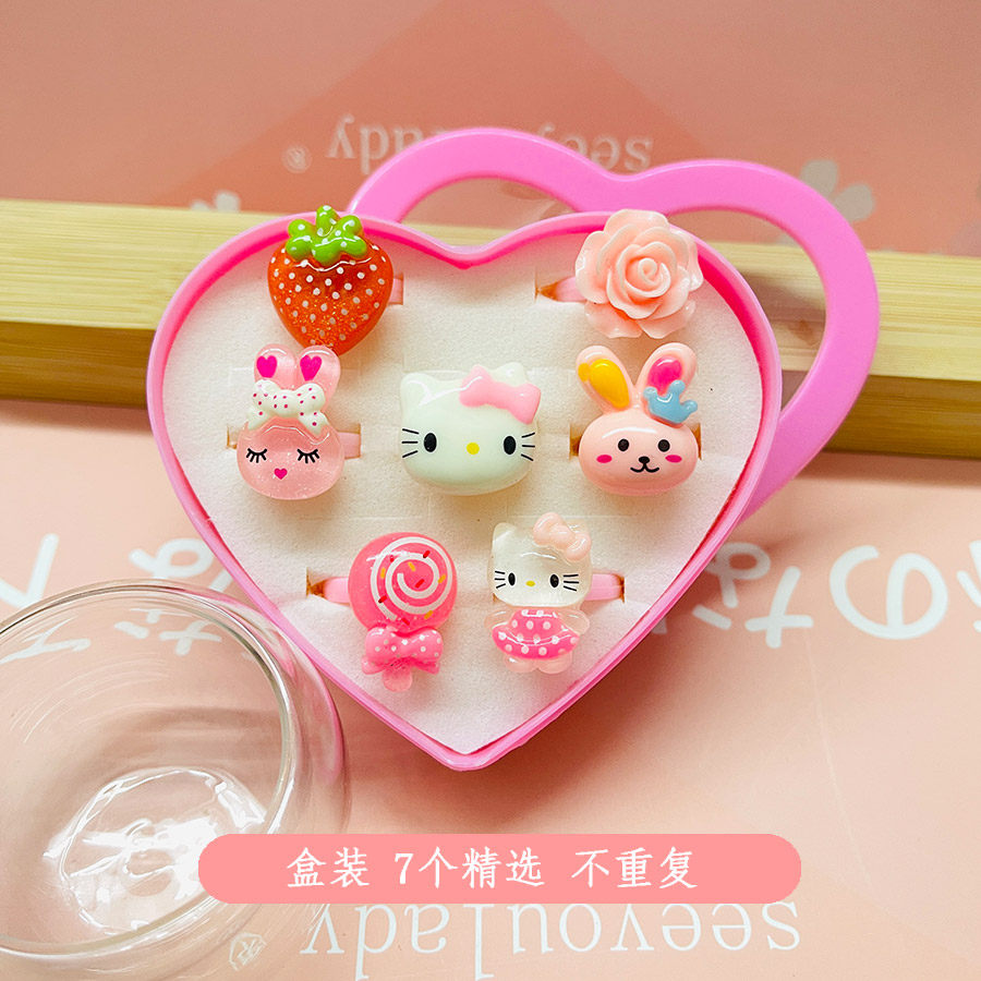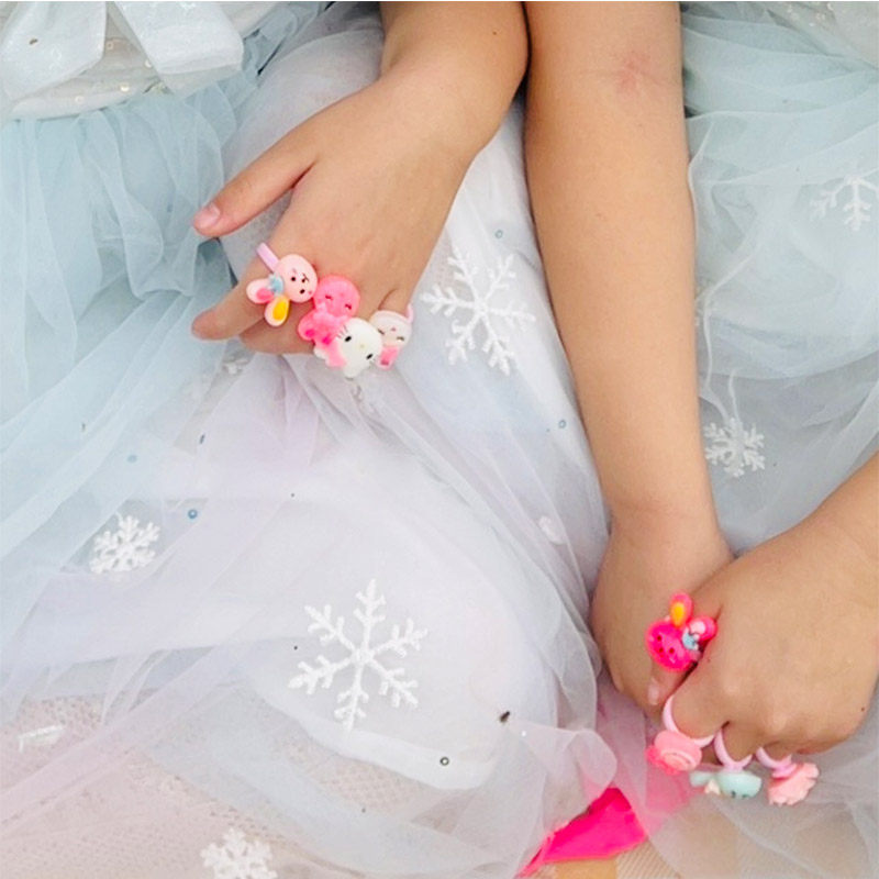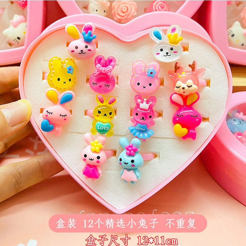 📚 儿童戒子女童小兔子戒指公主饰品幼儿园礼品卡通开口塑料生日戒指