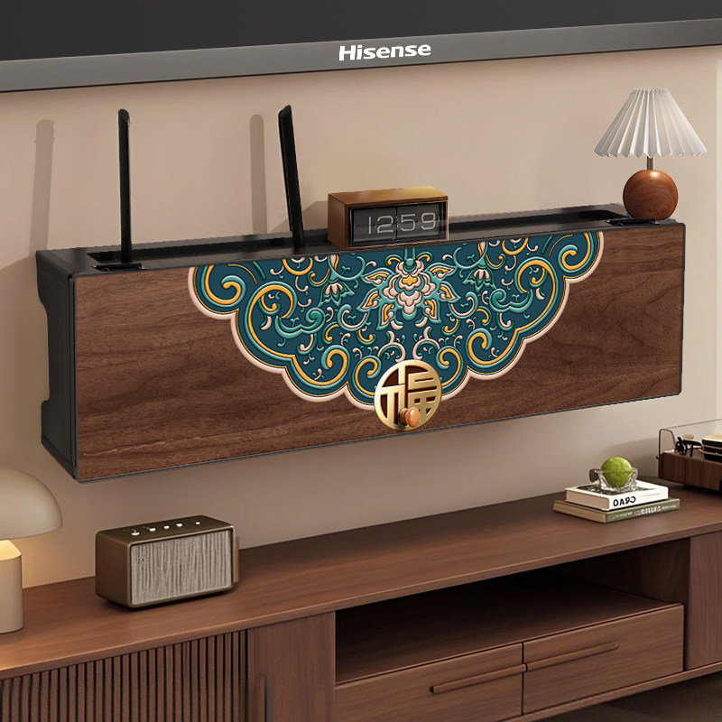 📚 wifi路由器收纳盒创意复古光猫置物架壁挂上墙电视柜插排遮丑神器