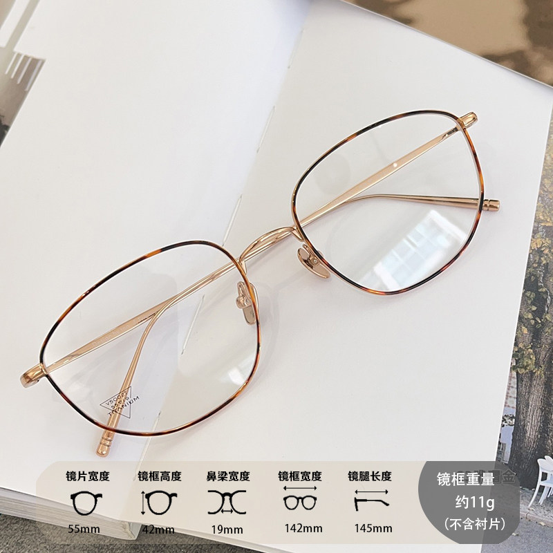 📚 韩系时尚网红素颜卡琳同款超轻多边形钛架眼镜架男女近视可配度数