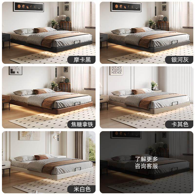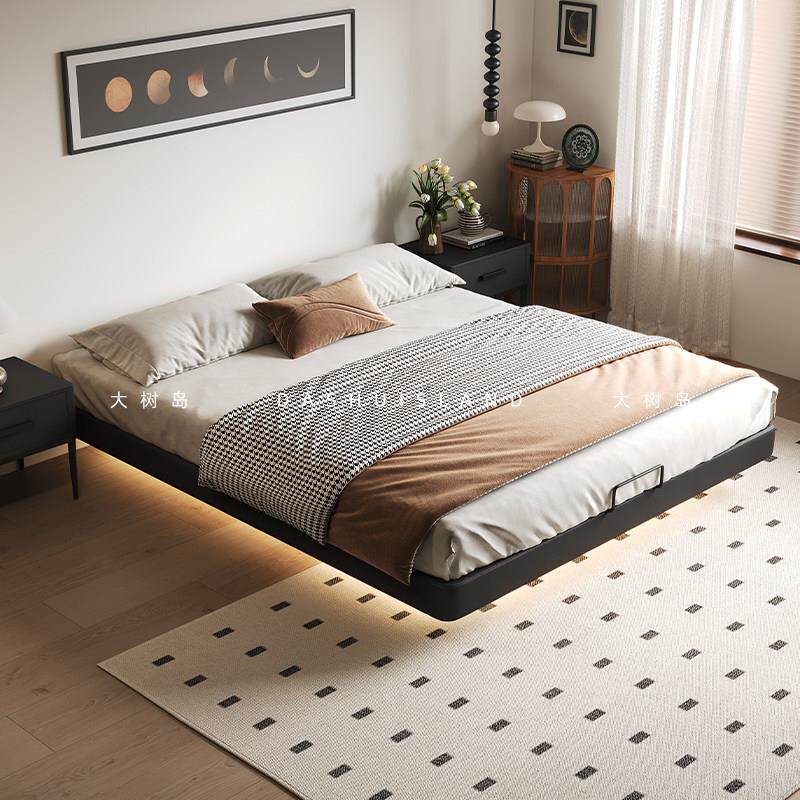 📚 大树岛家居悬浮床复古中古风无靠背主卧床现代简约无床头双人皮床