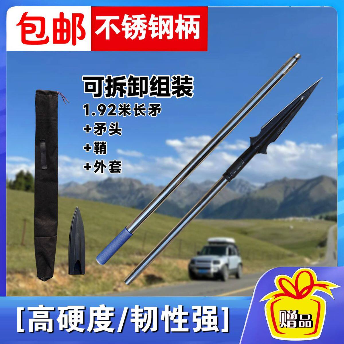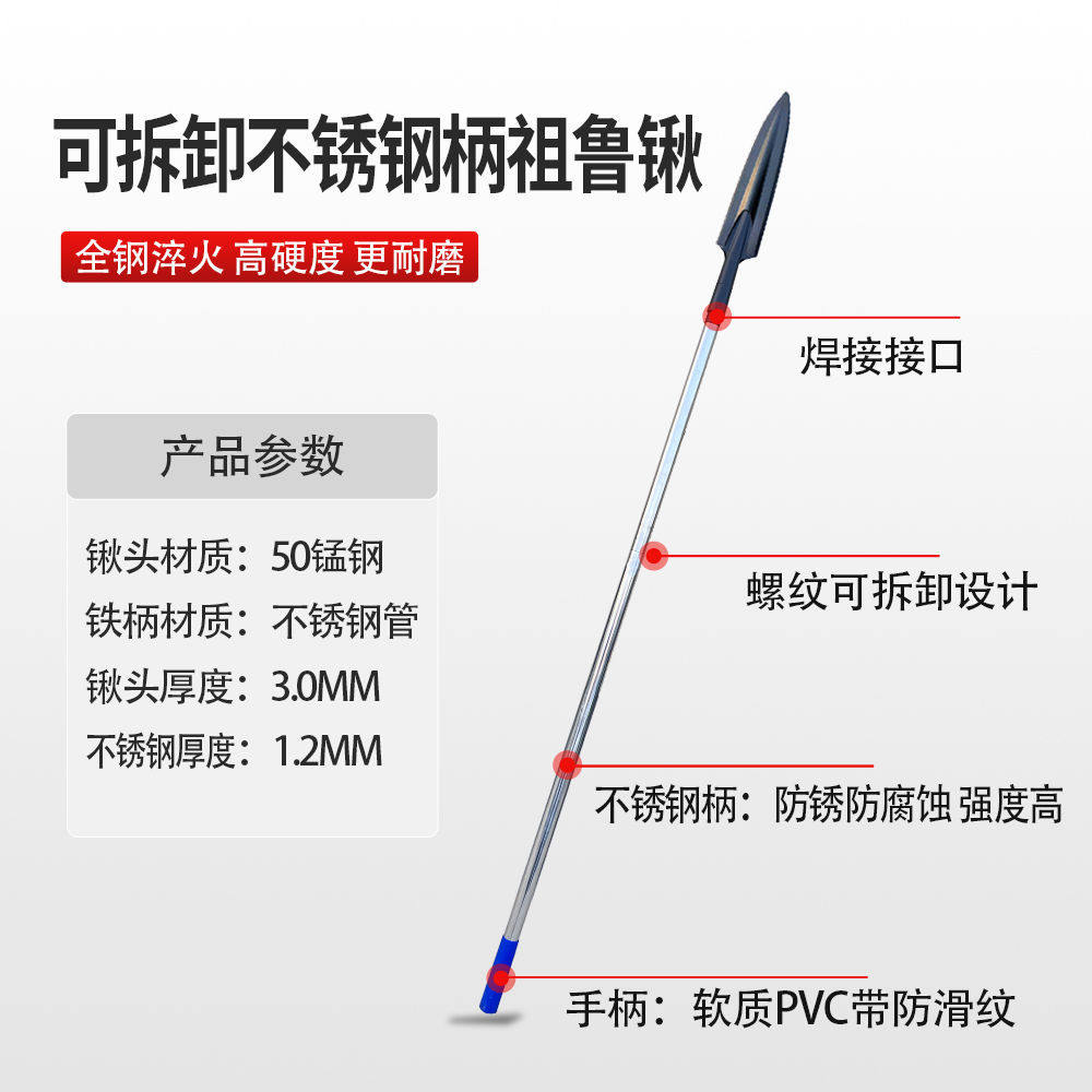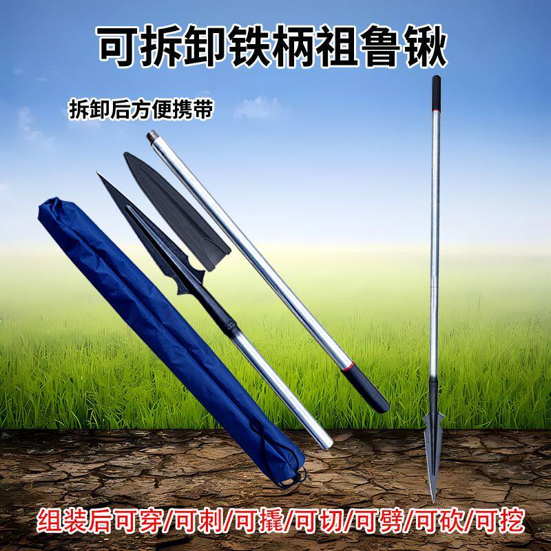 📚 新款祖鲁锹锰钢淬火一体成型可拆卸便携式不锈钢柄矛头红缨户外矛