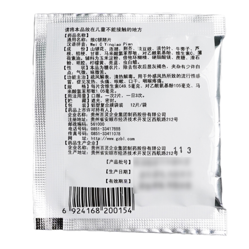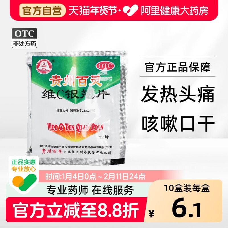 📚 贵州百灵维C银翘片片剂感冒药官方vc旗舰店常备药店正品家庭片维