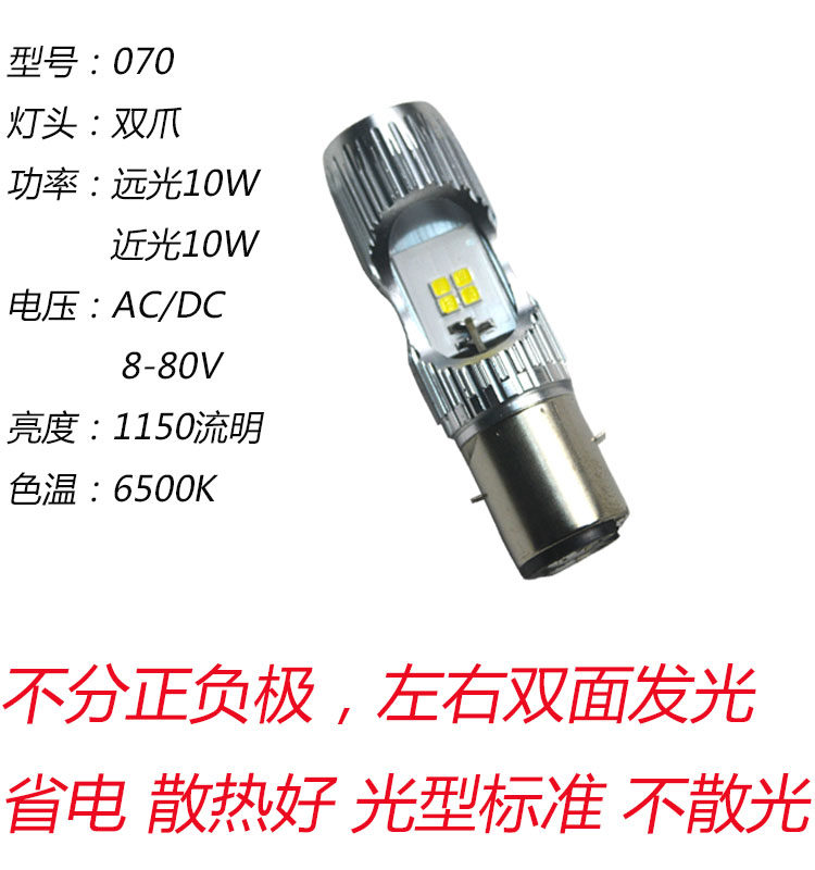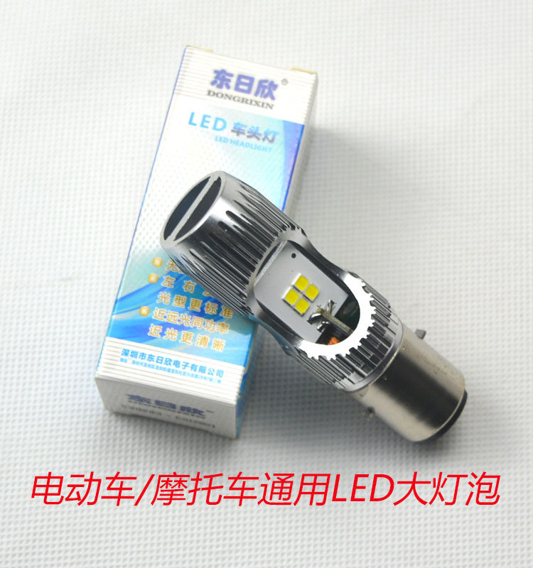 📚 东日欣电动踏板摩托车灯泡改装LED前大灯超亮强光双面远近光双爪