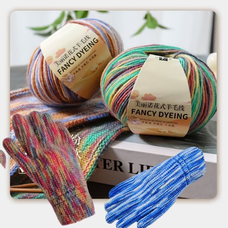 📚 段染羊毛织手套彩色毛线花线手工编织帽子围巾毛衣中粗棒针毛线团