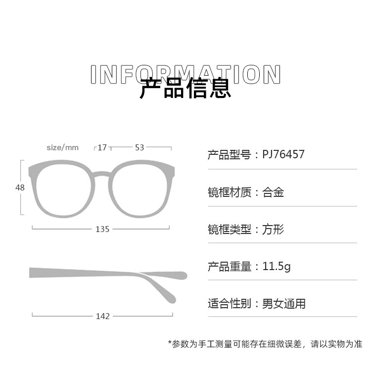 📚 新款帕莎框架眼镜框架多边形大框配防蓝光近视光学PJ76457H网红款