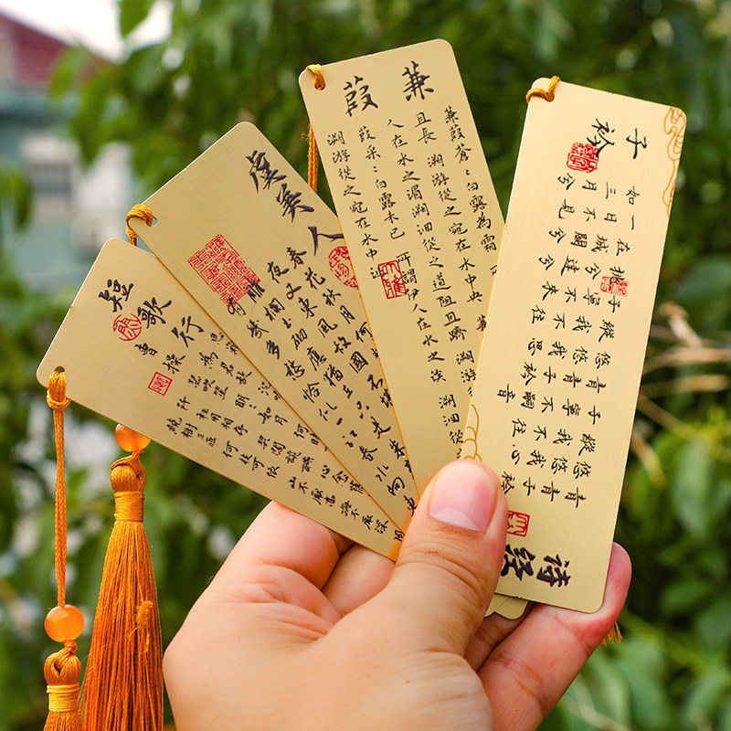 📚 中国风复古典镂空金属黄铜书签长恨歌三字经诗经桃夭虞美人子衿博物馆故宫文创礼品送老师同学生日礼物教师节