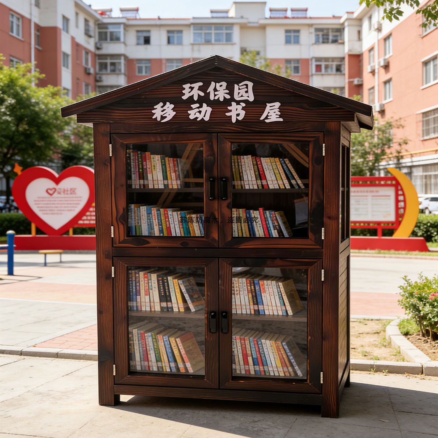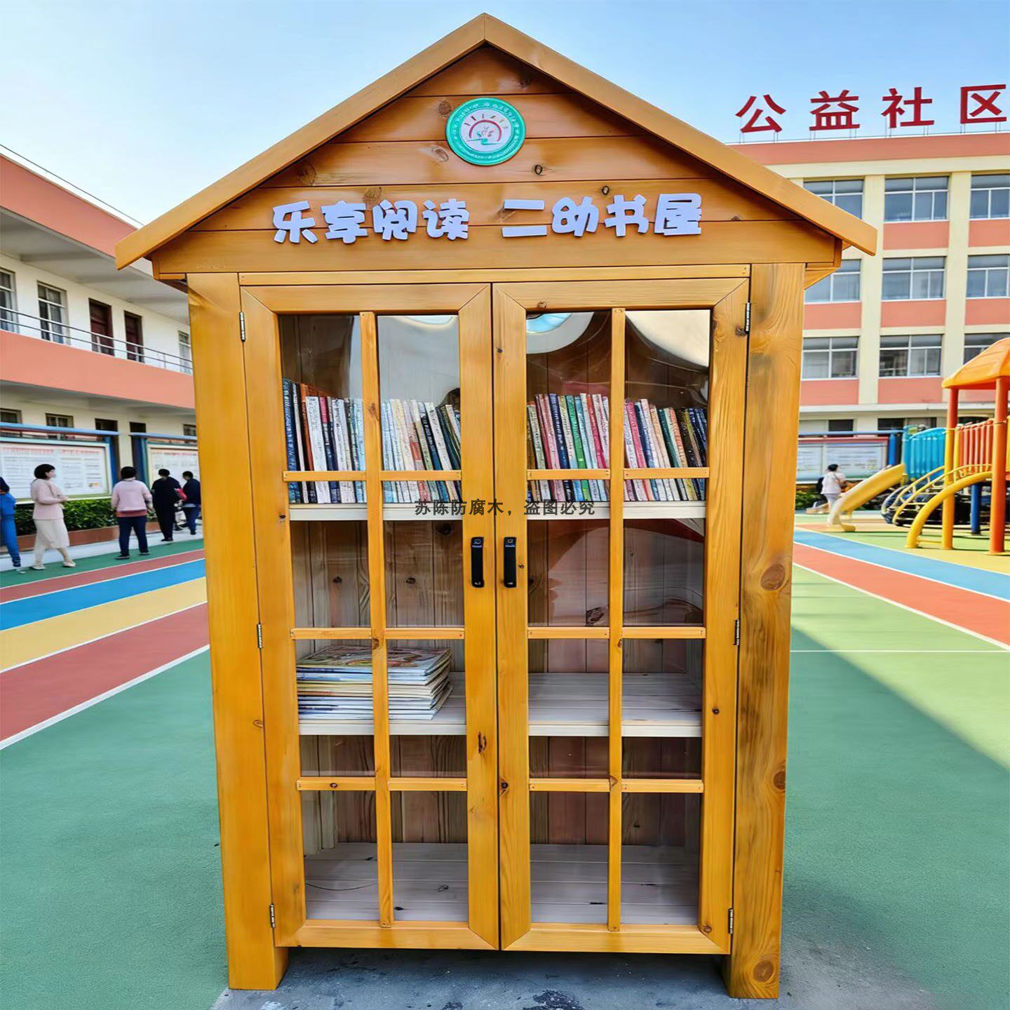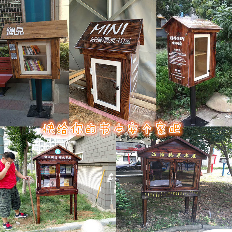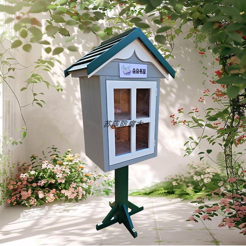 📚 户外防腐木阅读书架校园防雨漂流书屋公园景区意见箱爱心共享书柜