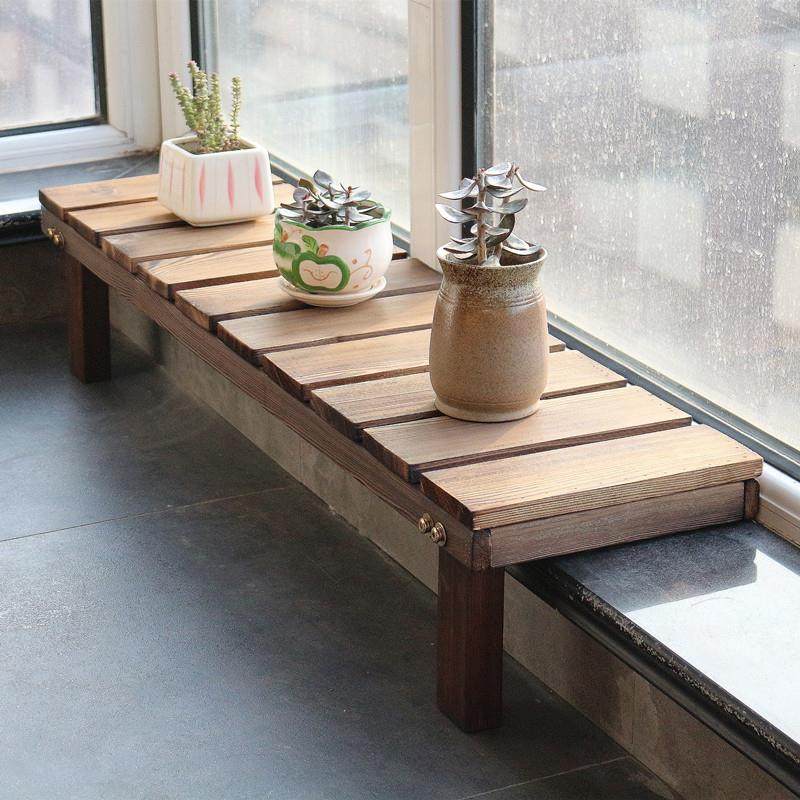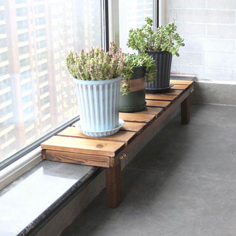📚 窗台加宽花架阳台防腐木实木遮挡架多肉单层花架子延伸拓宽置物架
