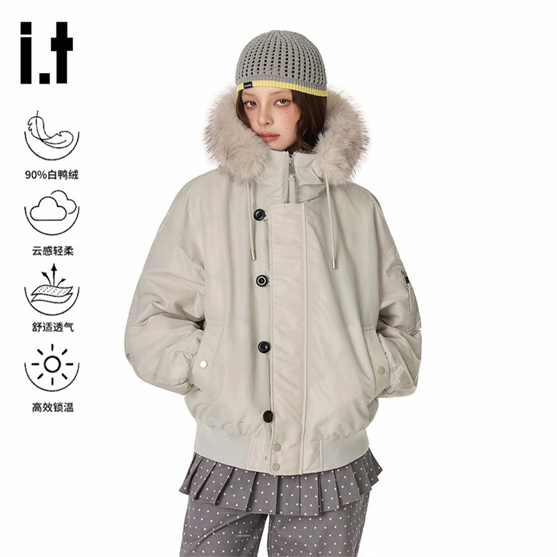 📚 it GROUND ZERO大毛领轻薄羽绒服男女款冬季2025新款外套保暖加厚