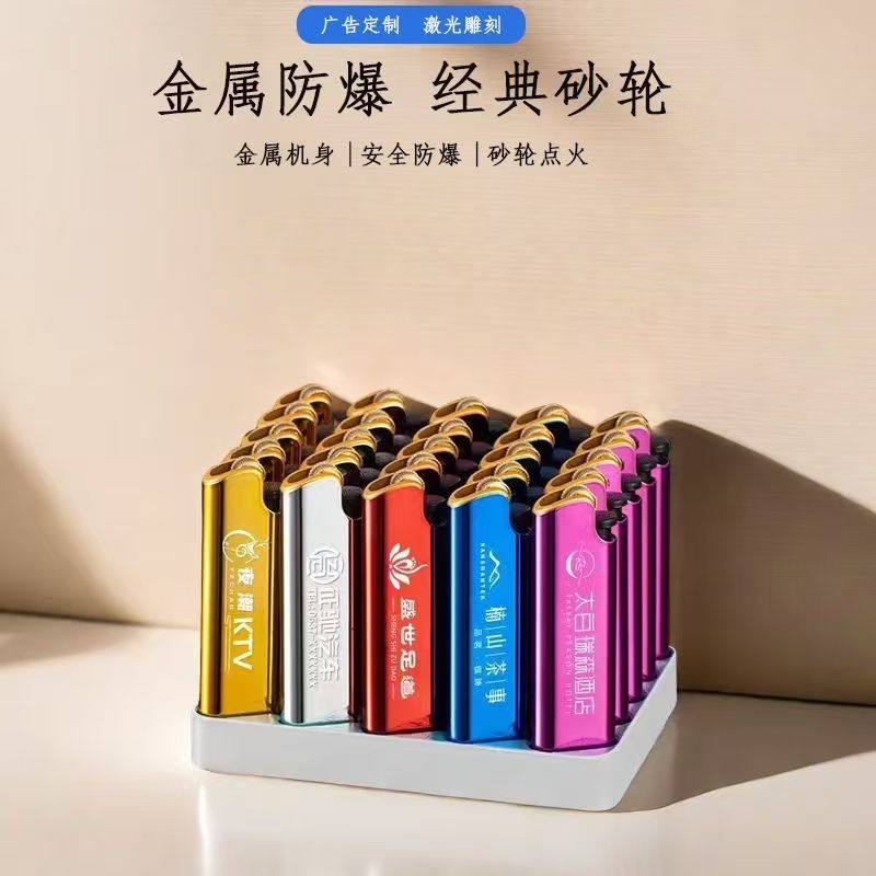 📚 定制订做高端金属打火机广告logo印字一次性充气加厚防爆砂轮批发