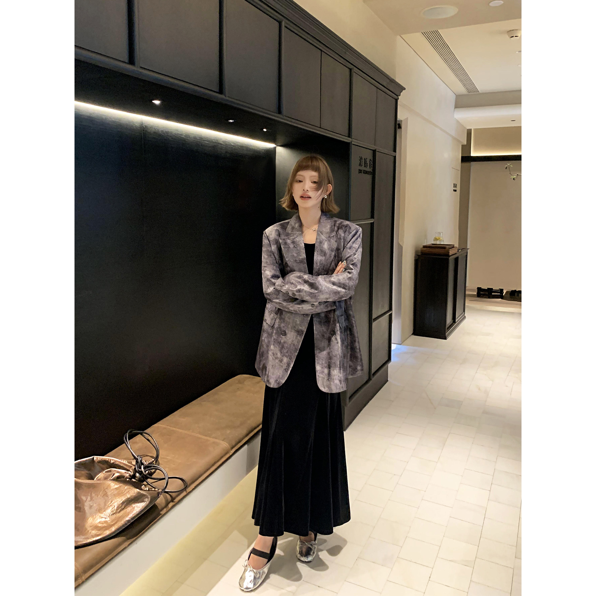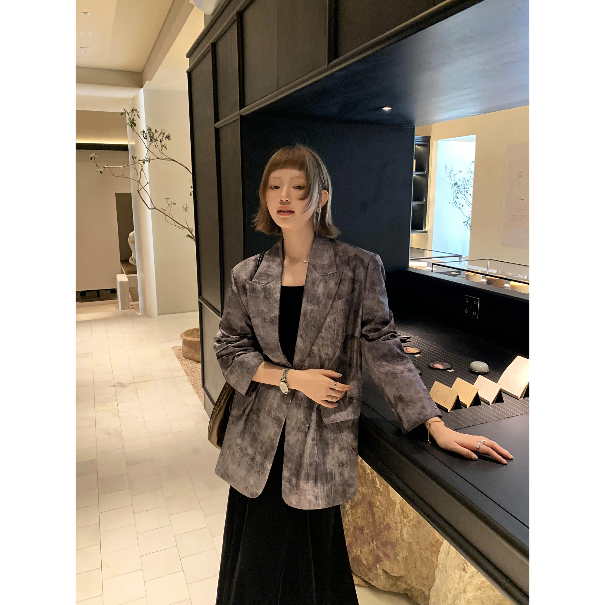 📚 辰米范【现货5折】沾染水墨肌理感西装外套女高级感宽松小西服