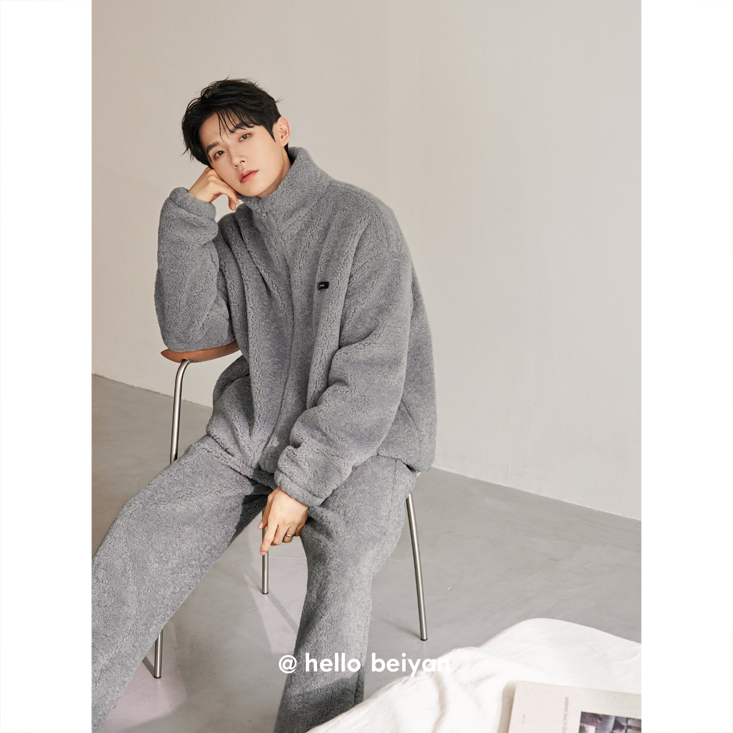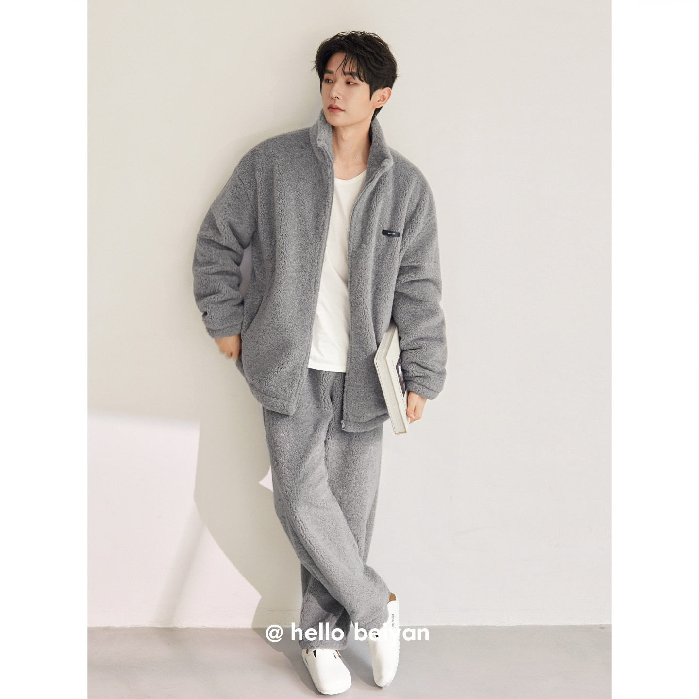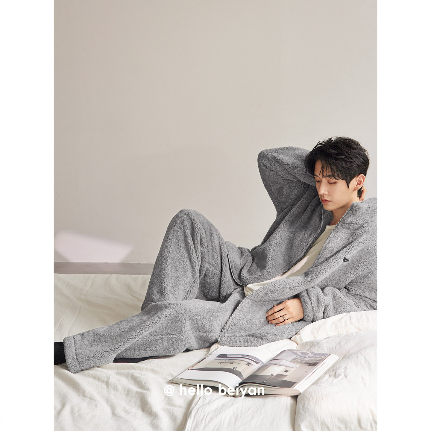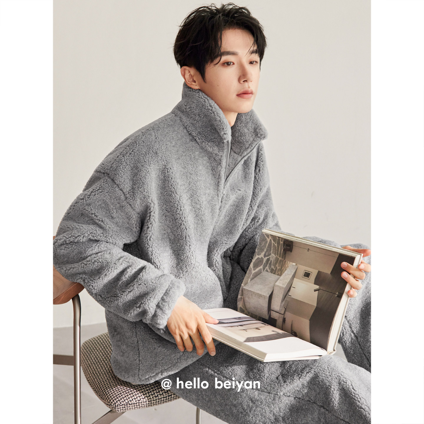 📚 贝妍珊瑚绒睡衣男款冬季保暖羊羔绒家居服时尚运动风青年加厚套装