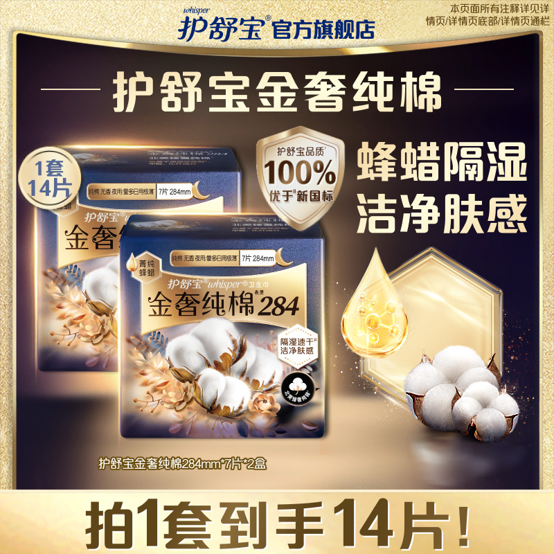 📚 护舒宝金奢纯棉卫生巾姨妈巾超薄透气组合240/284mm可选经期用
