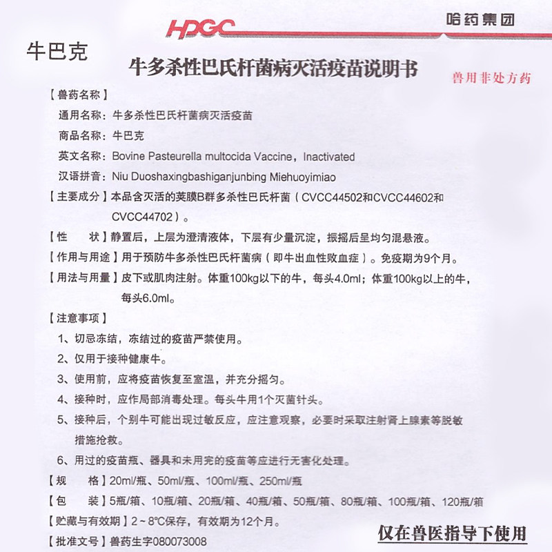 📚 牛巴氏杆菌病灭活疫苗牛出血性败血症传胸肺炎急性胃肠炎灭活疫苗