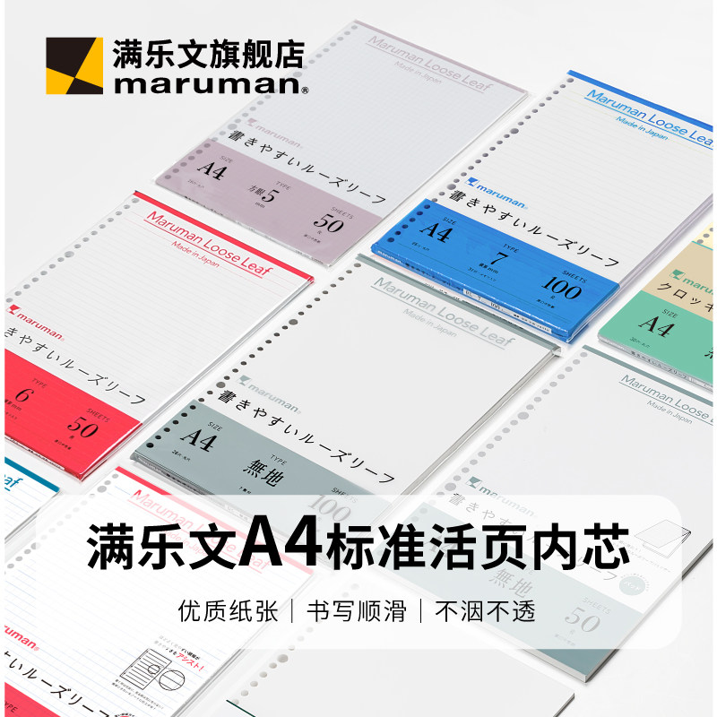 📚 maruman满乐文30孔A4加厚打孔活页纸替芯 活页夹笔记本英语横线活页本空白内芯配件内页不洇墨