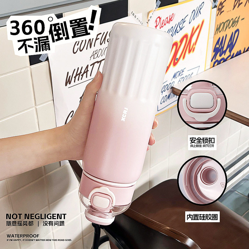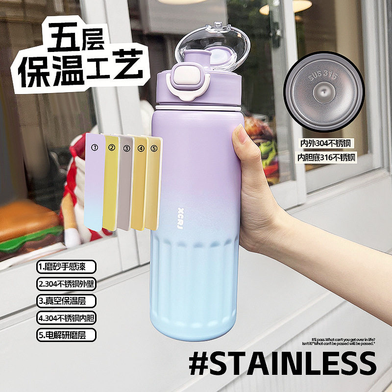 📚 便携保温杯304不锈钢喝水杯好看渐变800ml大容量儿童学生吸管杯子