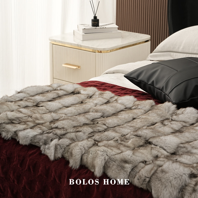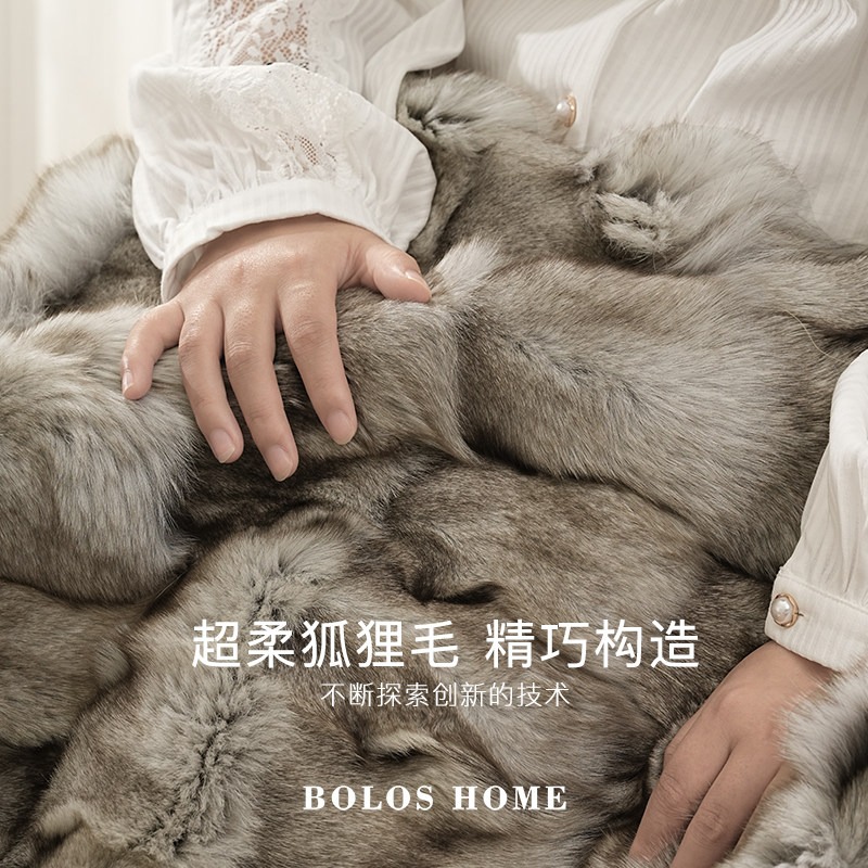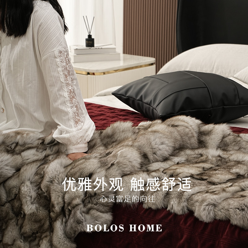 📚 柏洛斯luxury狐狸毛轻奢高级感秋冬毯子酒店卧室搭巾样板间床尾毯
