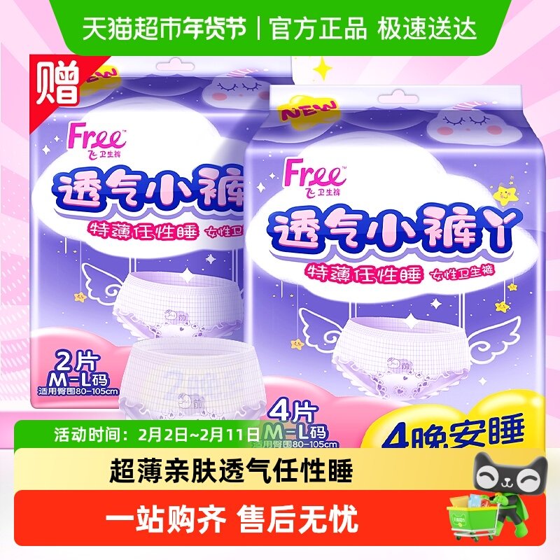 📚 Free/飞安睡裤安心裤型卫生巾小裤丫超长夜用【正品】