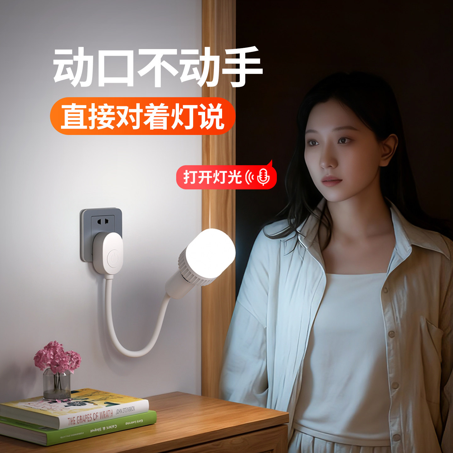 📚 智能语音小夜灯新款卧室家用声控制灯座感应开关灯泡插座床头壁灯
