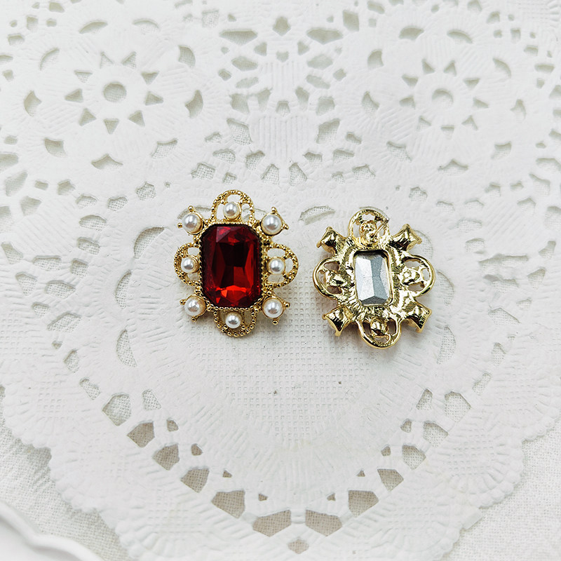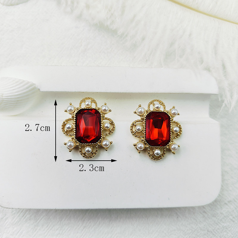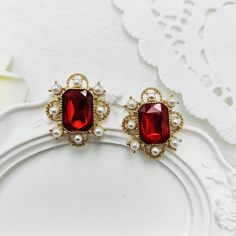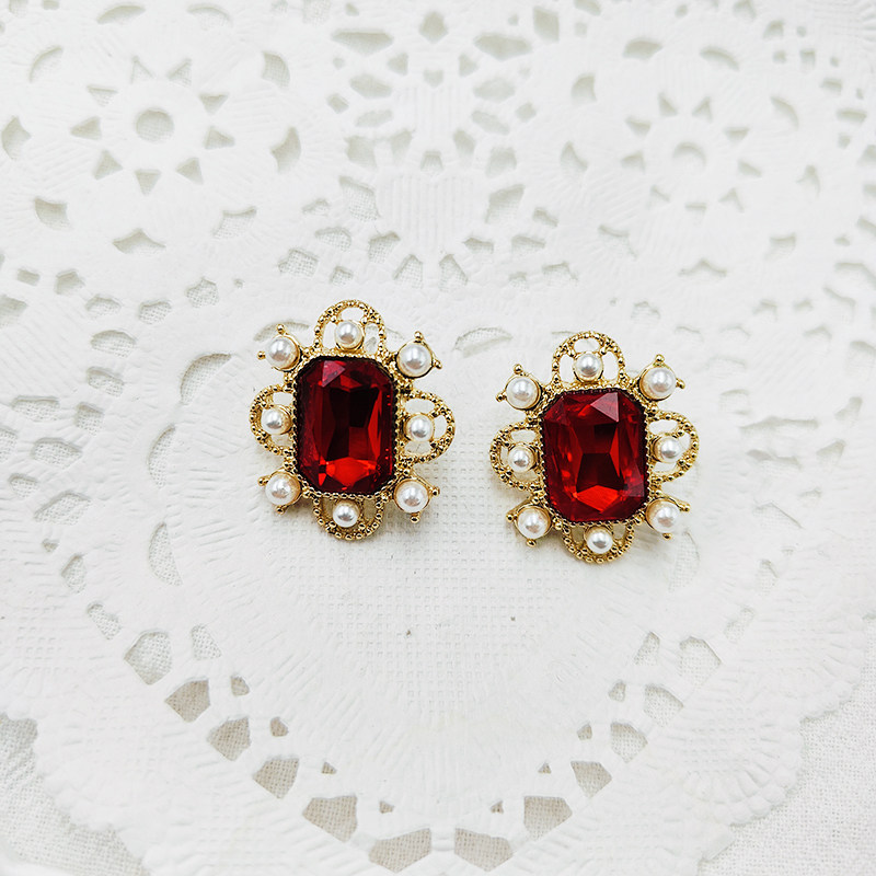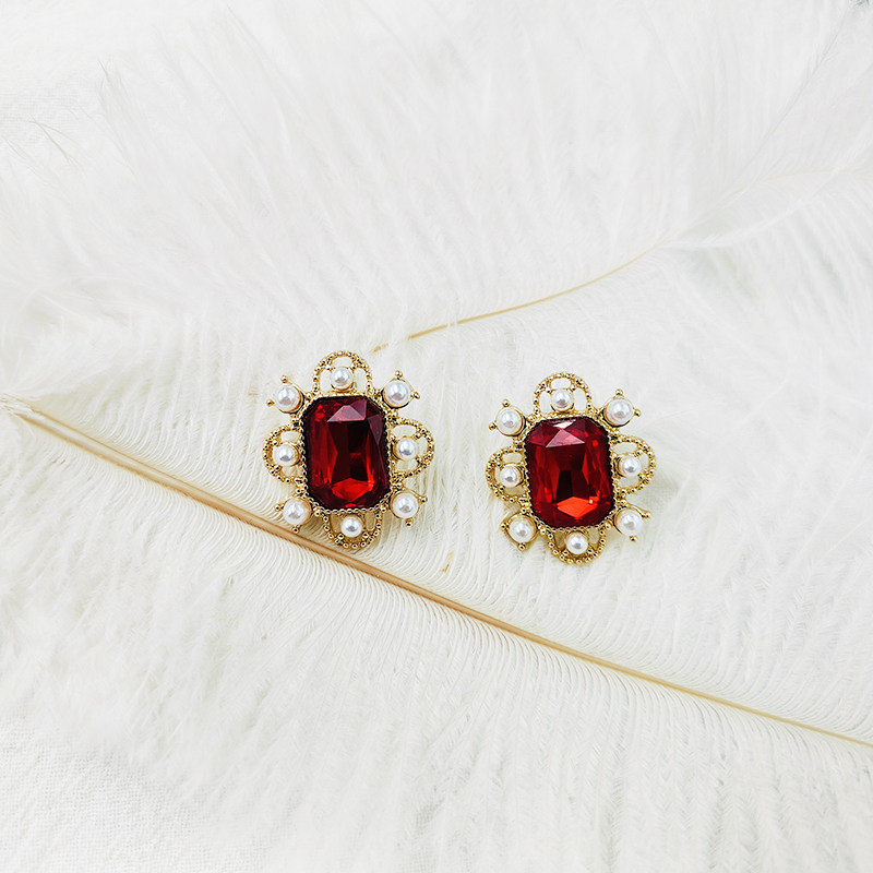 📚 红色方形宝石耳环法式复古小众设计欧美气质百搭耳夹耳饰【B812】