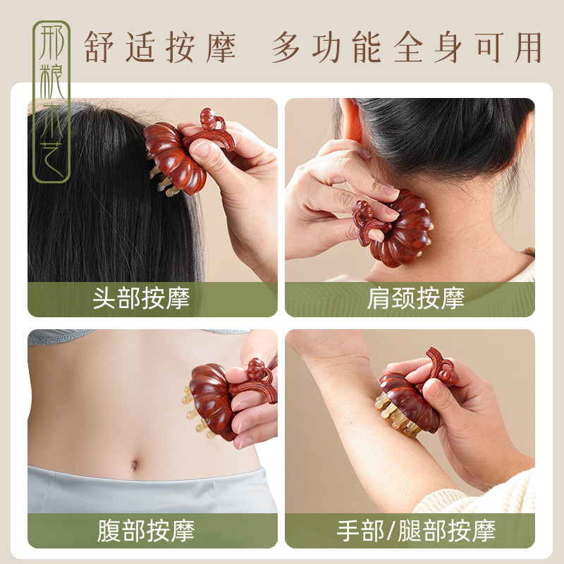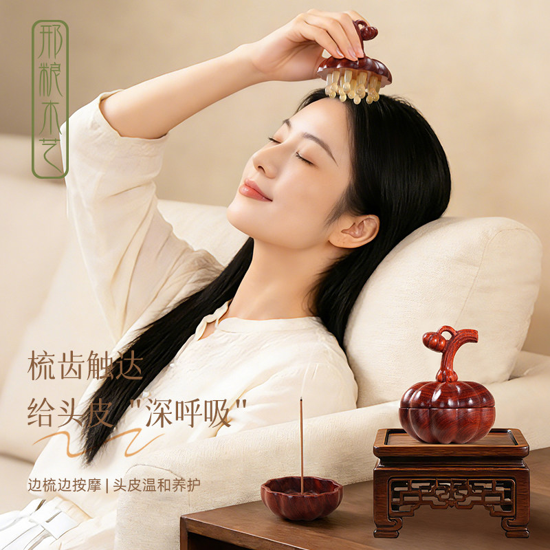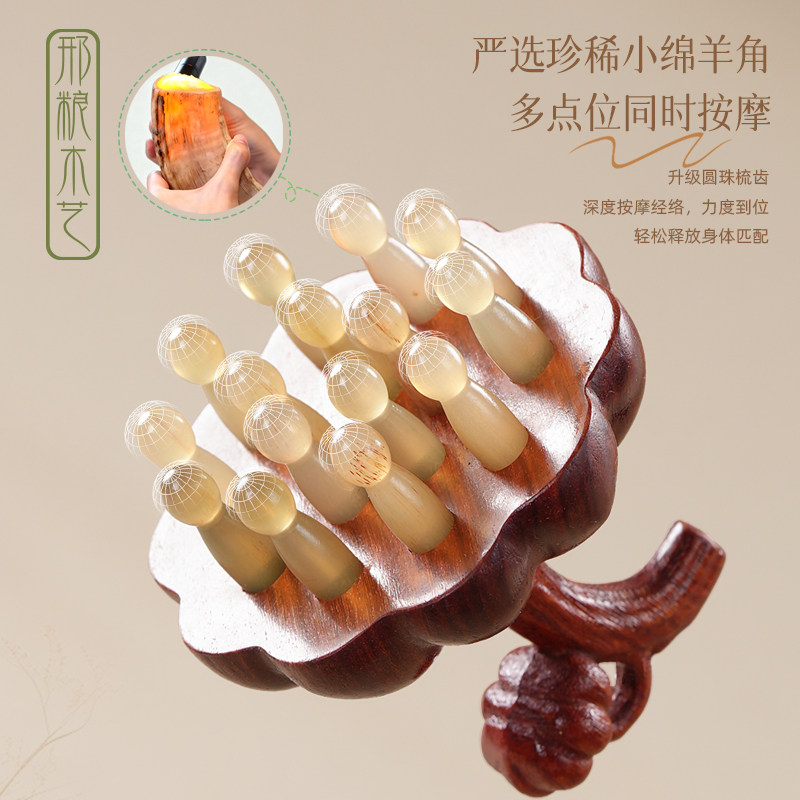 📚 邢粮木艺天然绵羊角子母南瓜按摩梳头皮按摩经络疏通女士礼盒装