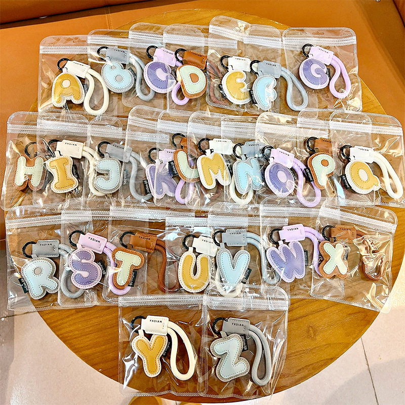 📚 26英文字母钥匙扣可爱创意包包皮质挂件情侣书包车钥匙链挂绳饰品