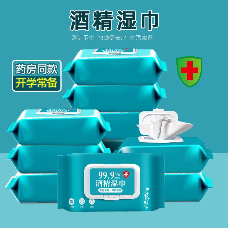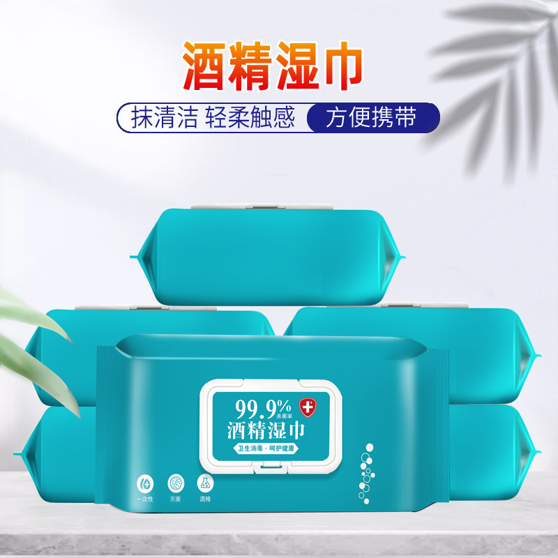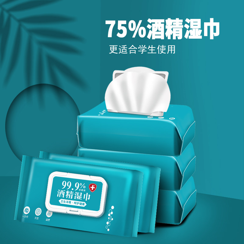 📚 含75酒精湿巾80抽6大包杀菌99.9清洁湿巾纸巾带盖家用常备实惠装