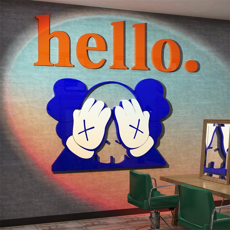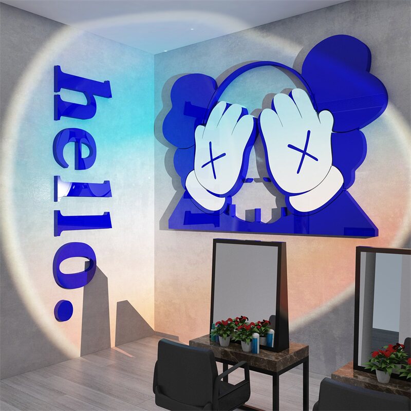 📚 网红打卡理发店墙前面装饰美容院廊海报收银吧台形象背景贴画服装
