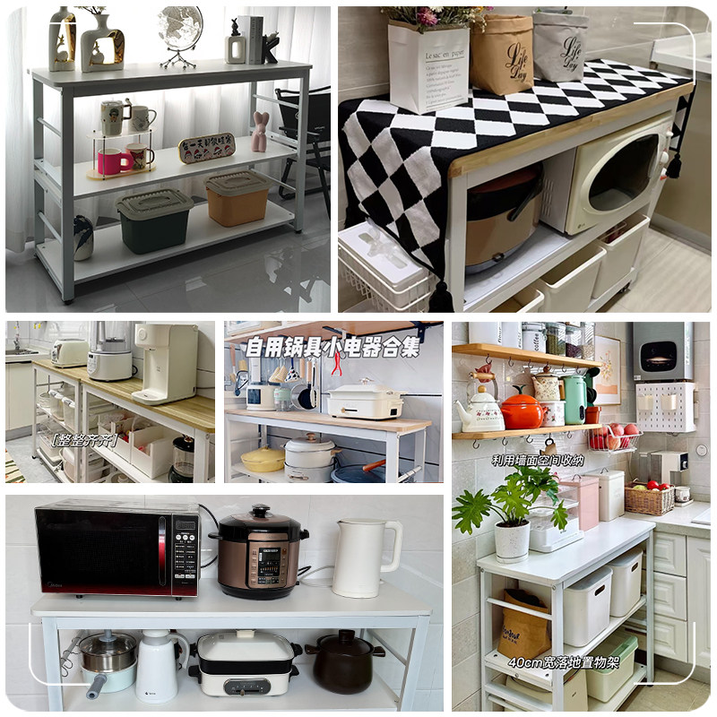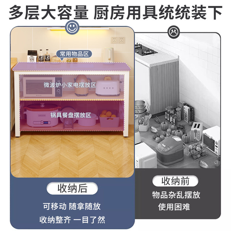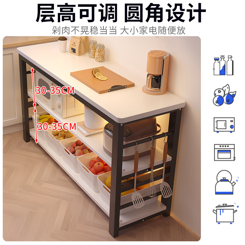 📚 厨房置物架落地多层多功能切菜桌子储物工作台餐边窄边柜收纳架子