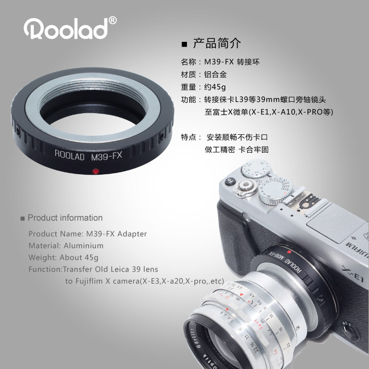 📚 M39-FX 转接环 徕卡L39旁轴老镜头转接富士XT-2 XA10 Xpro3等微单