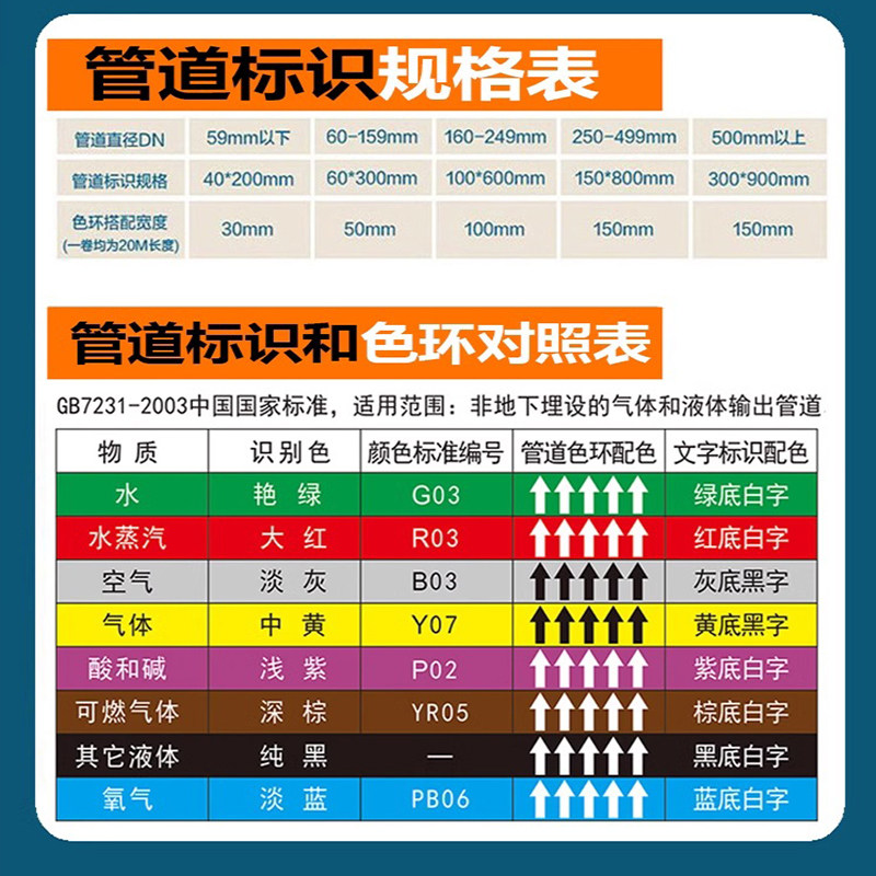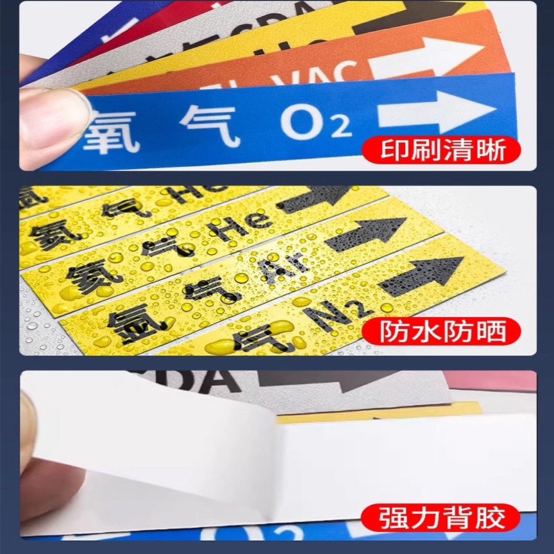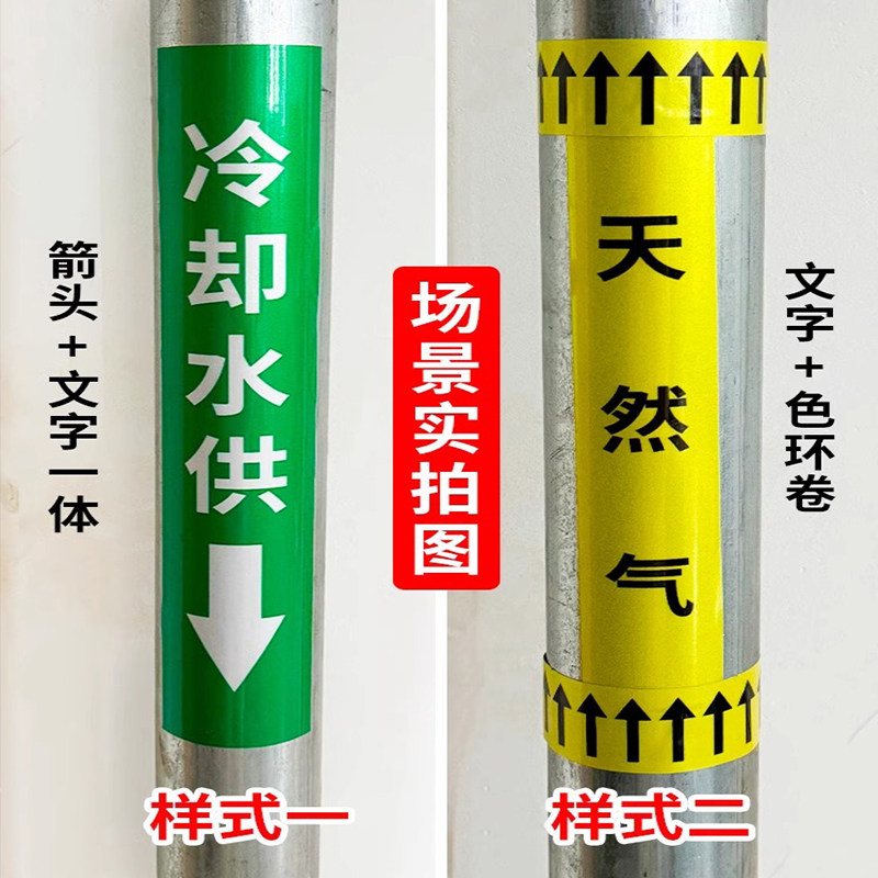 📚 管道标识贴纸发电厂自来水厂酒厂制药厂压缩空气天然气消防管道介质流向箭头贴纸色环国标反光标签定制定做