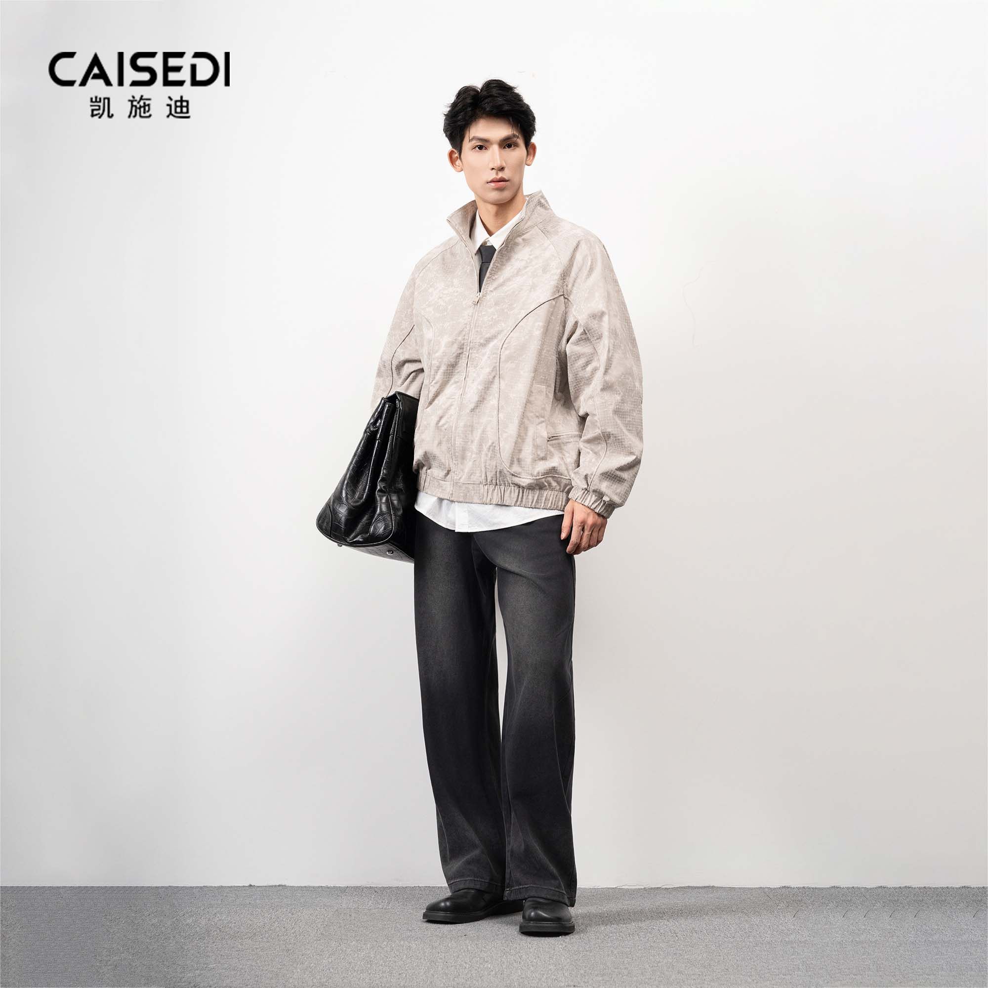 📚 凯施迪短款立领夹克男秋冬新品潮牌立体鳄鱼皮肌理感防风外套男士