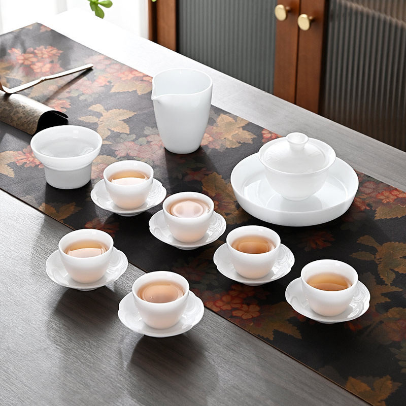 📚 2025新款冰种白瓷功夫茶具套装家用德化全套餐盖碗茶杯礼盒高雅