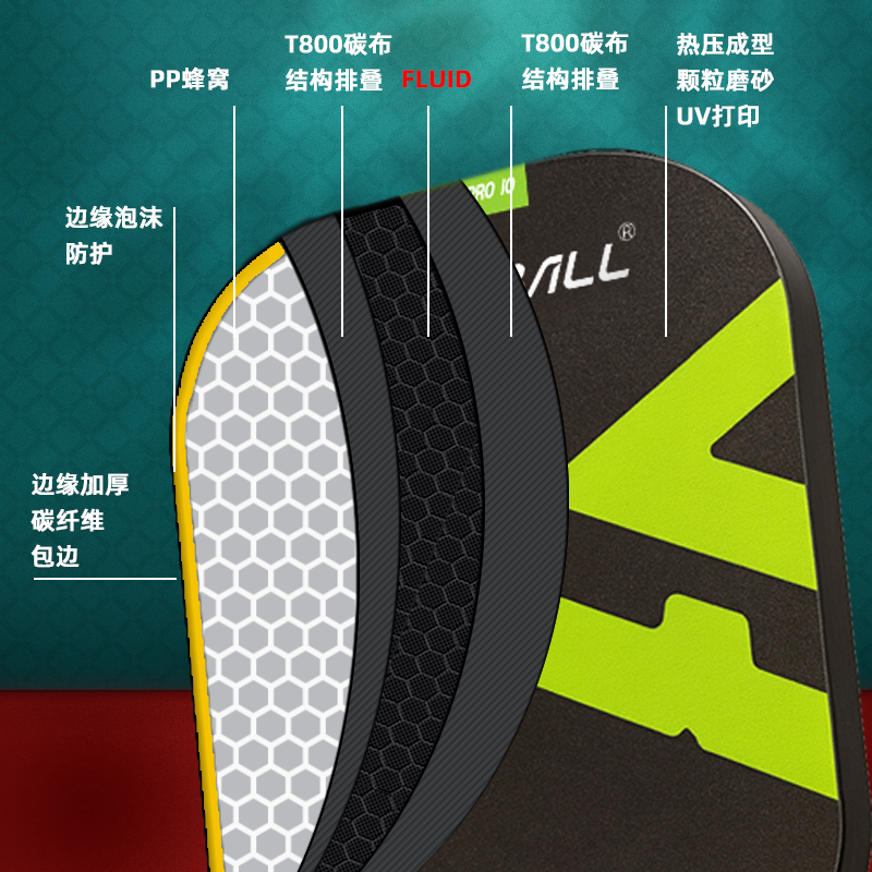 📚 威戈博T800热压成型动态核心双向弹力技术专业选手匹克球拍