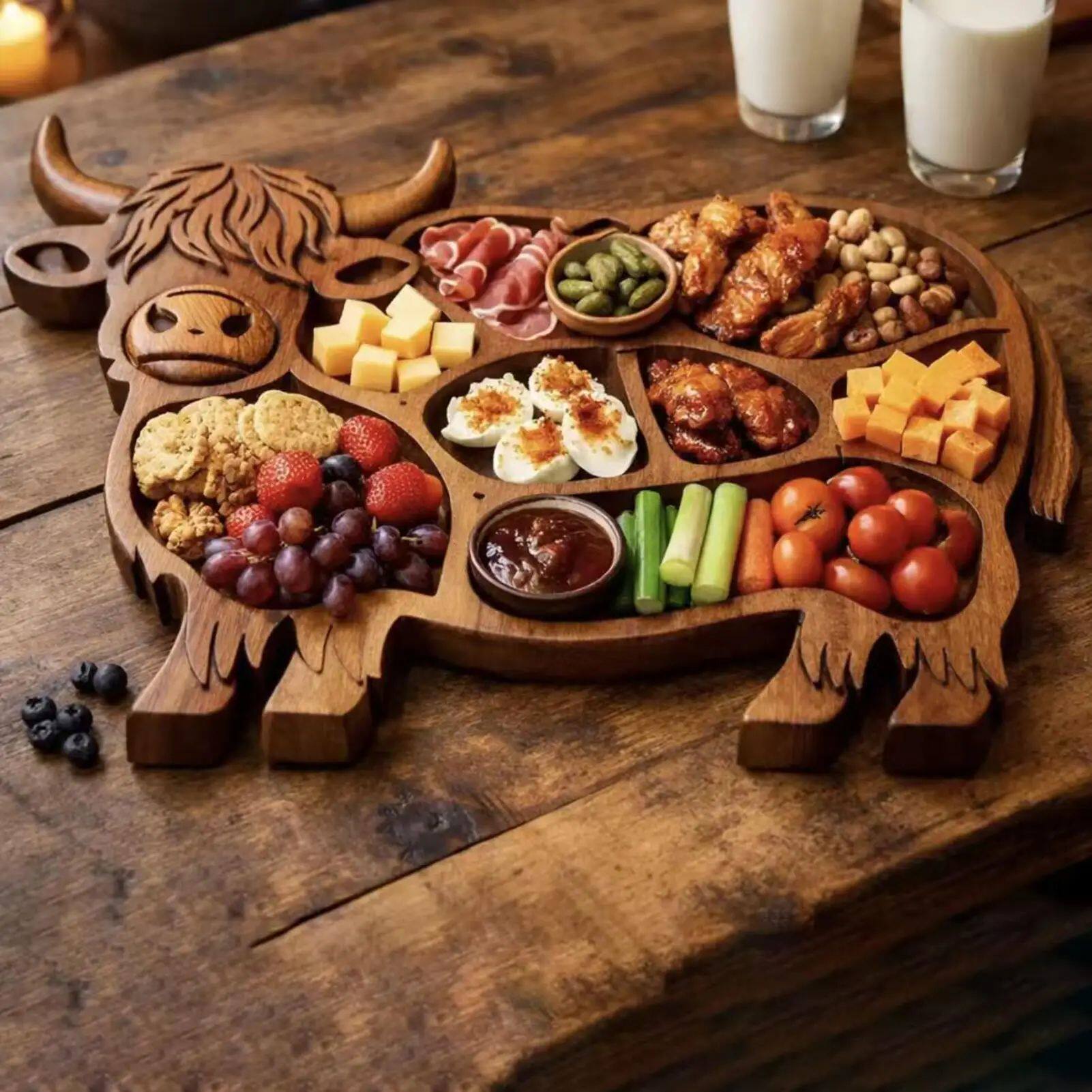 📚 Cow Charcuterie Board Wooden Cow Food Platter Appetizer