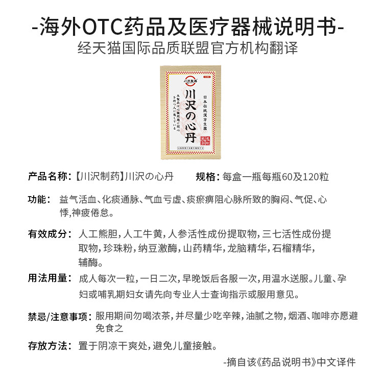 📚 日本进口川沢制药救心丹救心丸益气活血化痰通脉气血亏虚