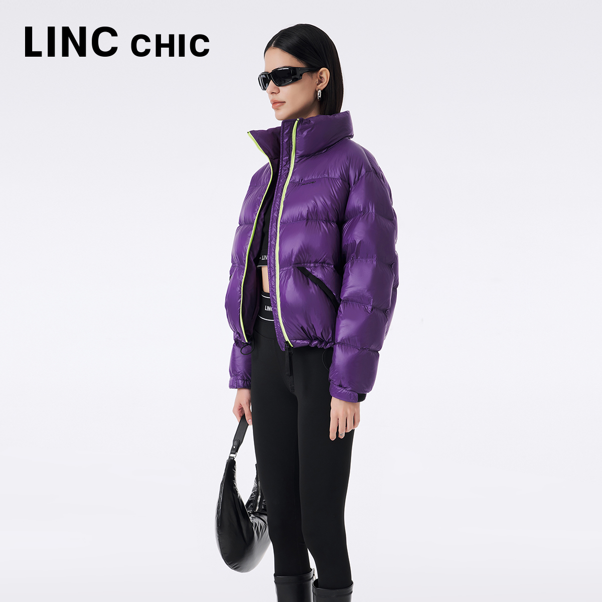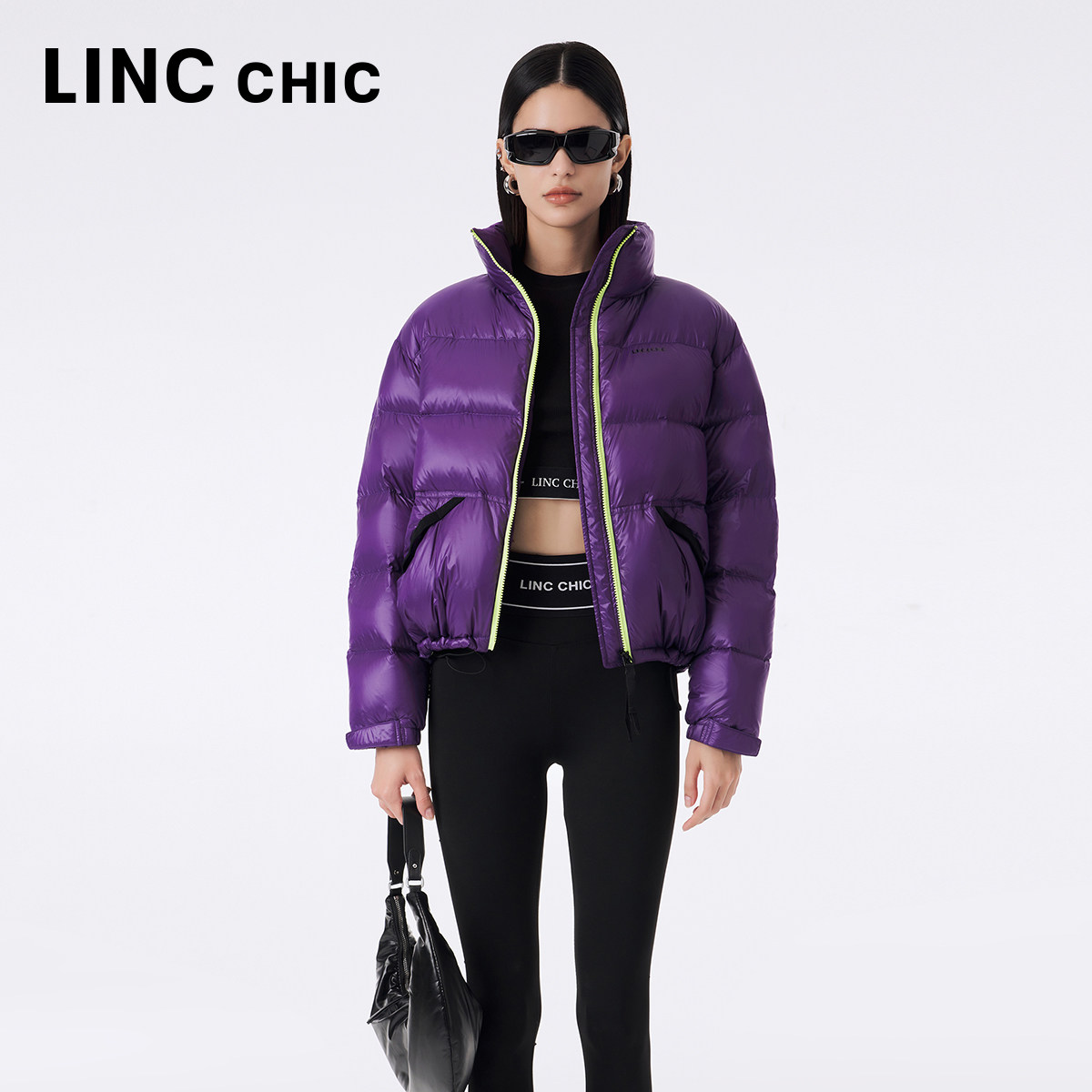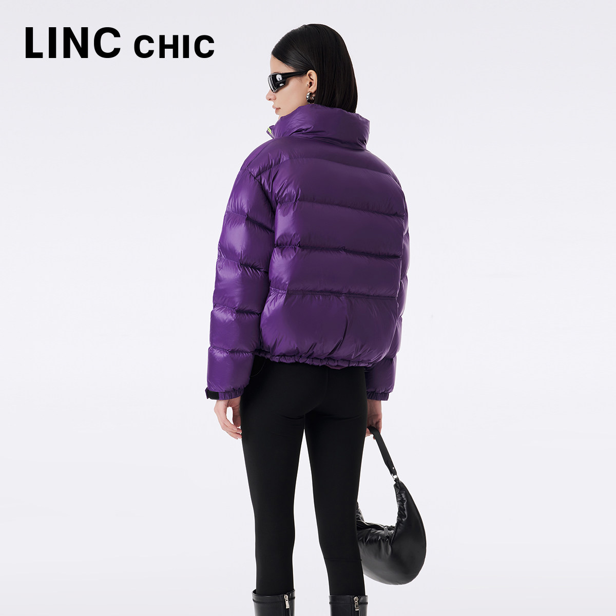 📚 LINC金羽杰短款羽绒服女春季羽绒服亮彩立领面包服秋冬外套1296