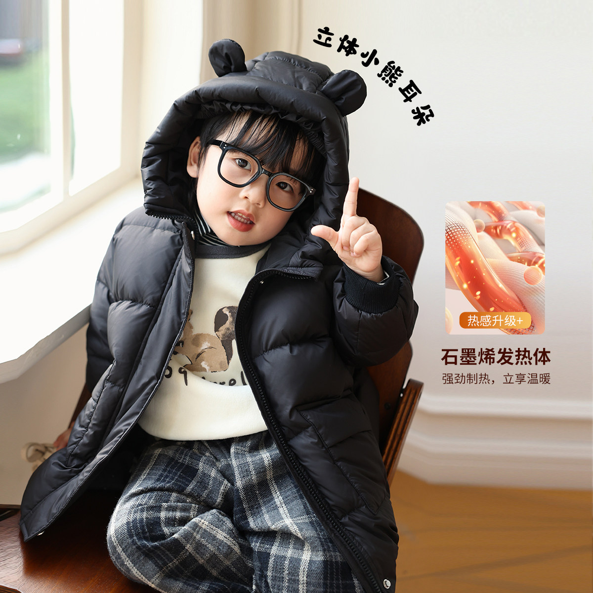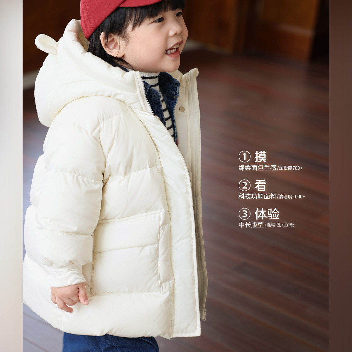 📚 12.小O爸男婴童【竖起耳朵】宝宝保暖中长款羽绒服婴儿三防外套
